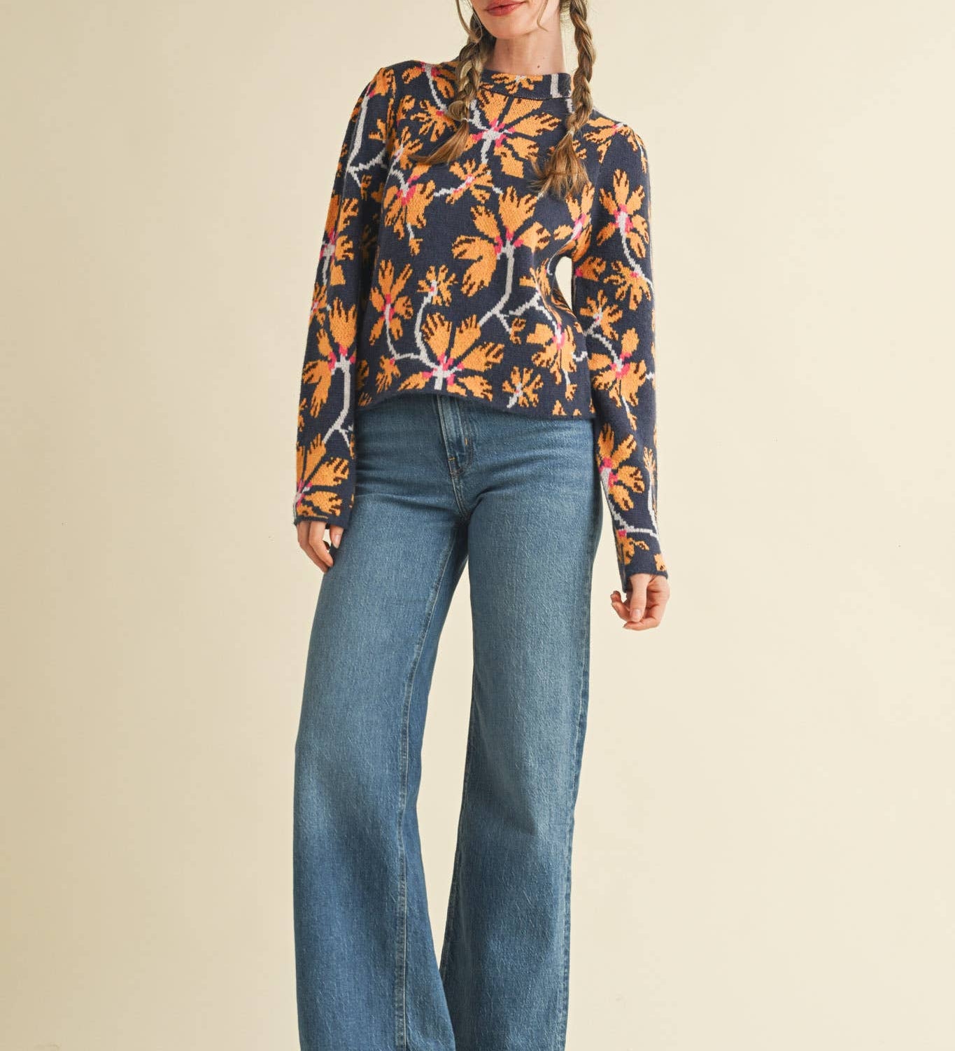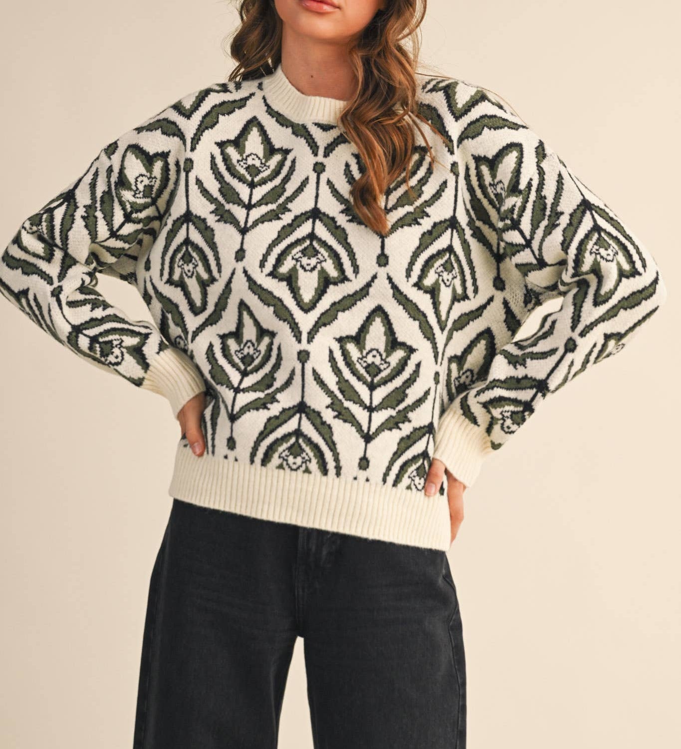 &MERCI - FLORAL MOCK NECK SWEATER MSW11101