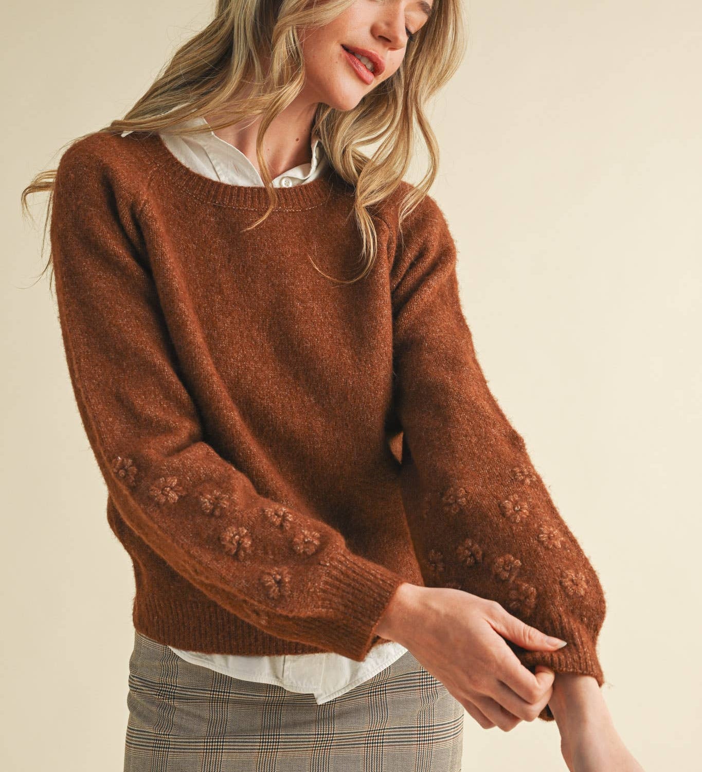 &MERCI - FLORAL KNIT PUFF SLEEVE SWEATER MSW10912