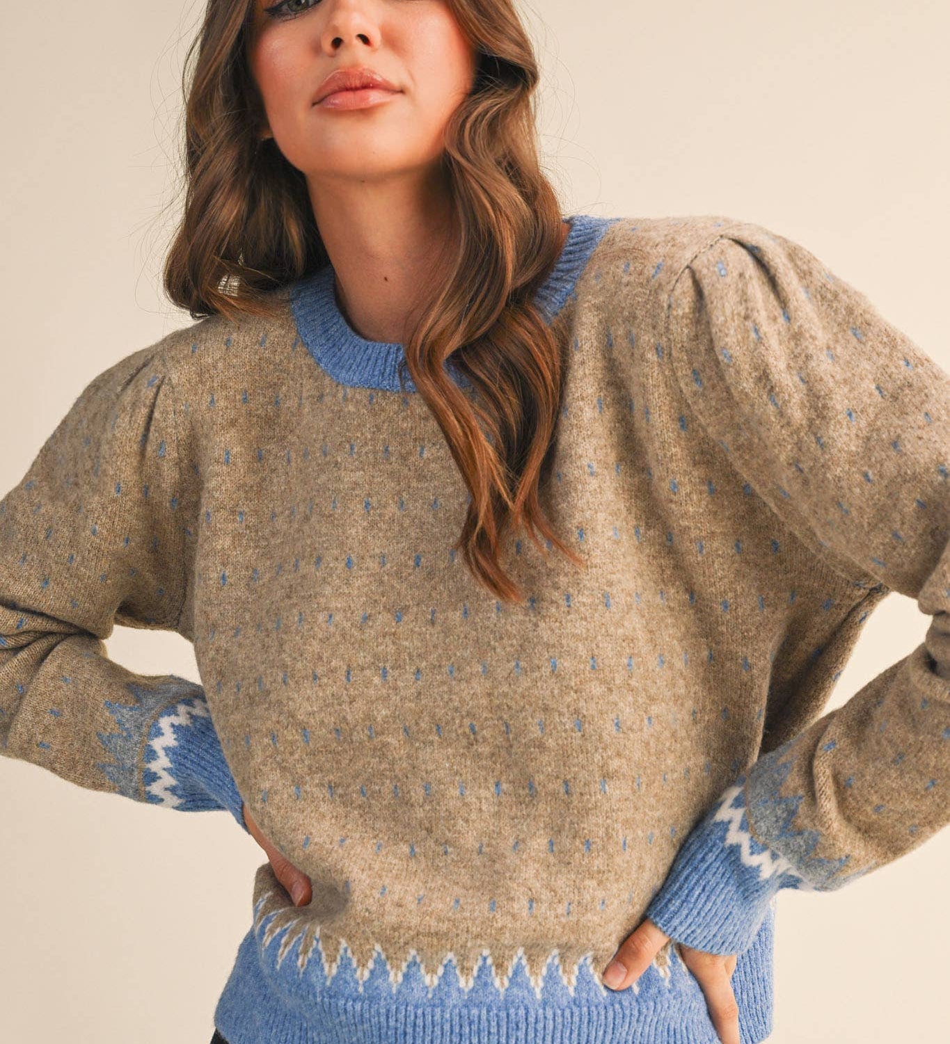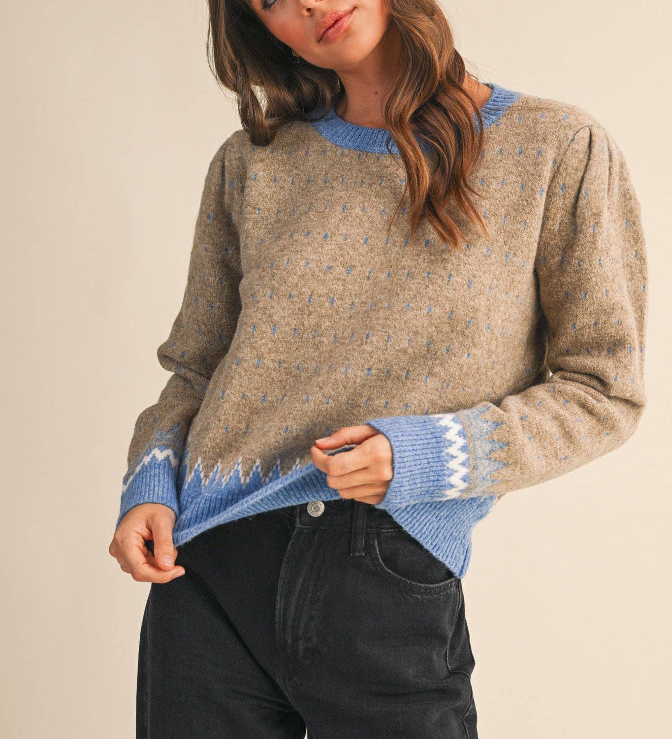 &MERCI - CABLE KNIT FAIR ISLE SWEATER MSW10679