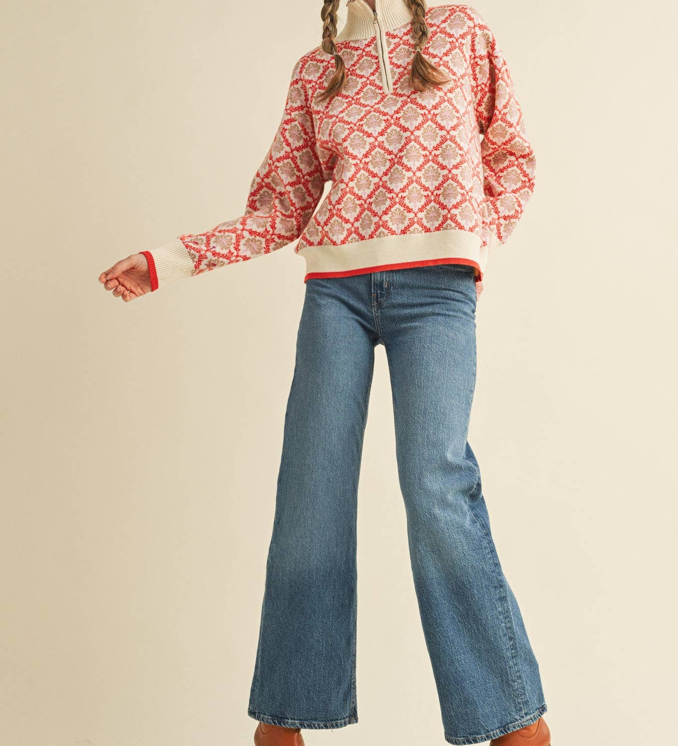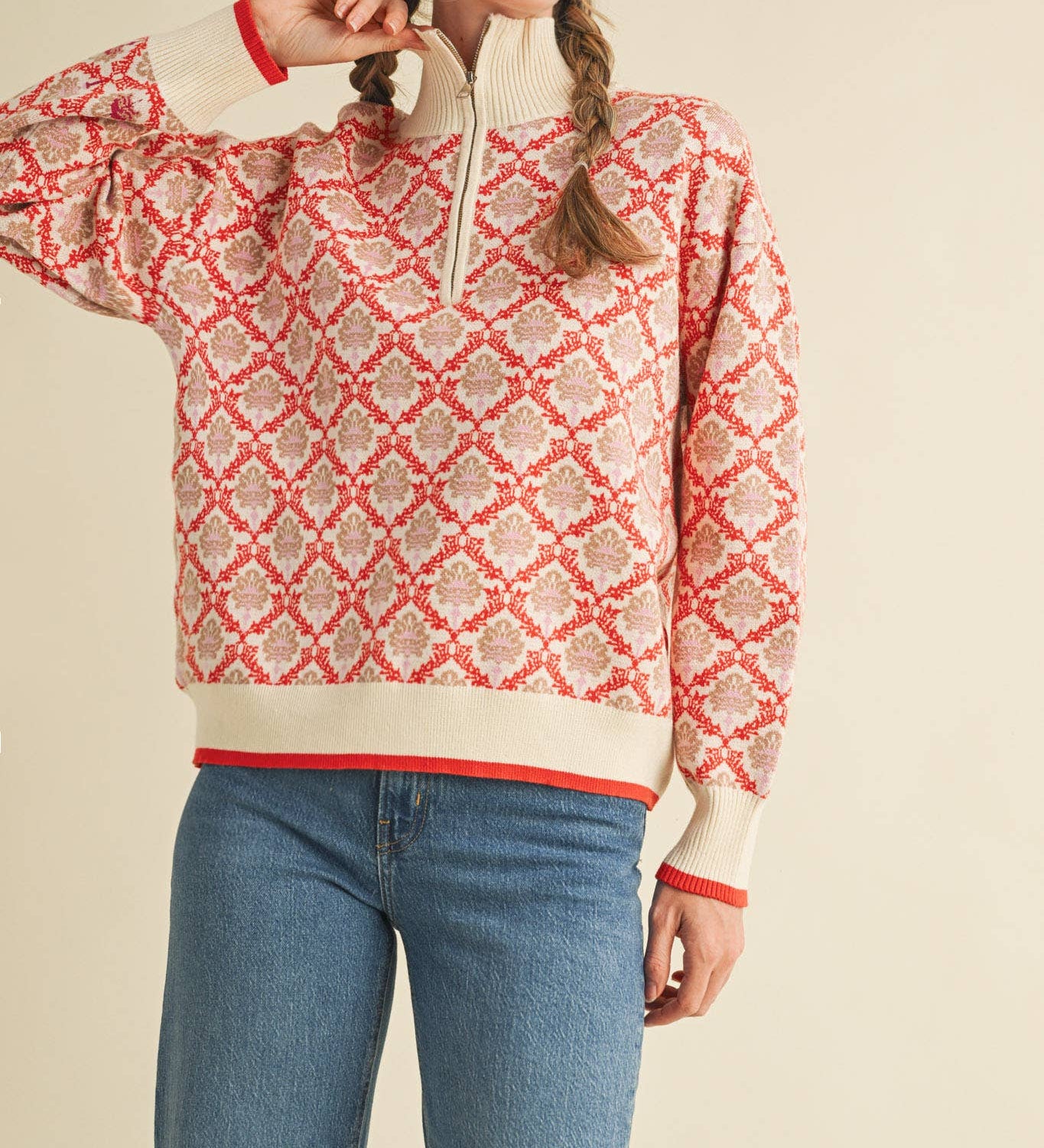 &MERCI - FLORAL MOCK NECK HALF ZIP PULLOVER MSW10829
