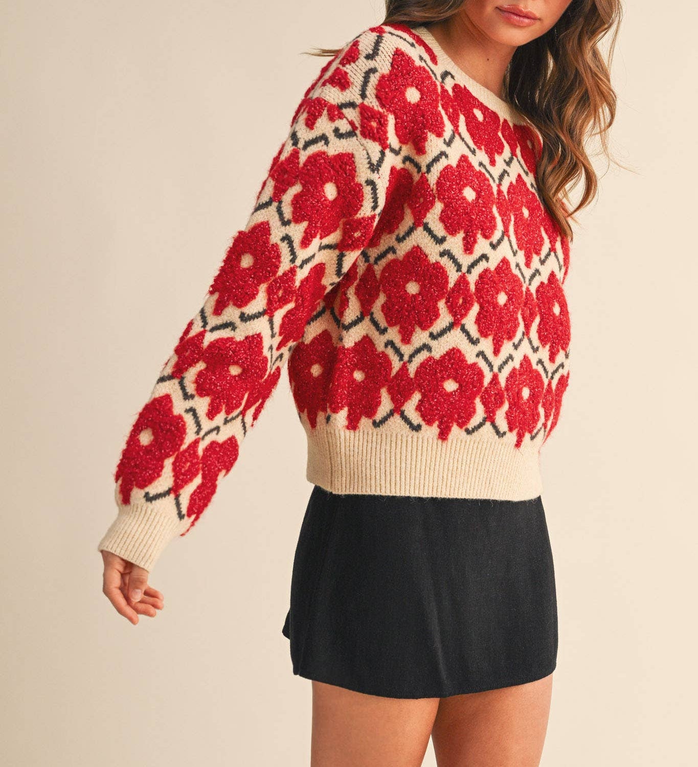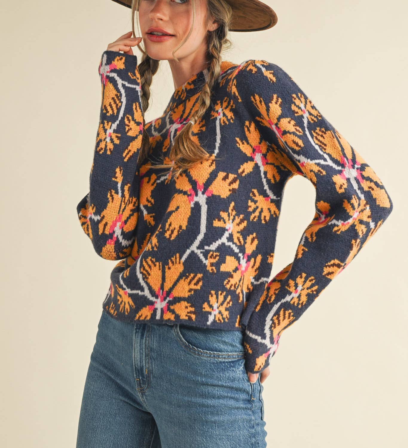 &MERCI - FLORAL PATTERN KNIT SWEATER MSW11095