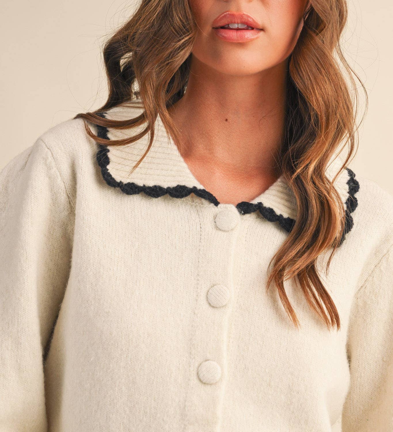 &MERCI - CONTRAST SCALLOPED COLLAR SWEATER CARDIGAN MSW11141