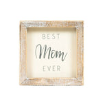 5x5x1.5 wood frame sign (MOM) white/natural. Celebrate the extraordinary woman in your life with our 5x5x1.5 Wood Frame Sign proudly proclaiming "Best Mom Ever".