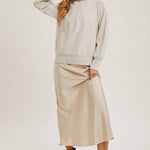 The crew neck cable knit sweater is a timeless wardrobe essential that combines warmth with style. It features a classic crew neckline and intricate cable knit detailing, which adds texture and visual interest. This sweater's cozy, thick fabric makes it ideal for colder weather, while its relaxed fit ensures comfort without sacrificing elegance. Versatile and chic, it can be dressed up with tailored pants or worn casually with jeans, making it a staple for a polished, effortless look throughout the cooler months.