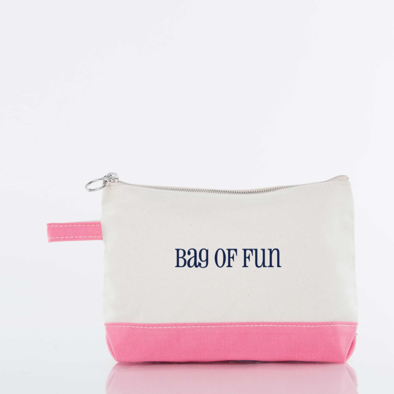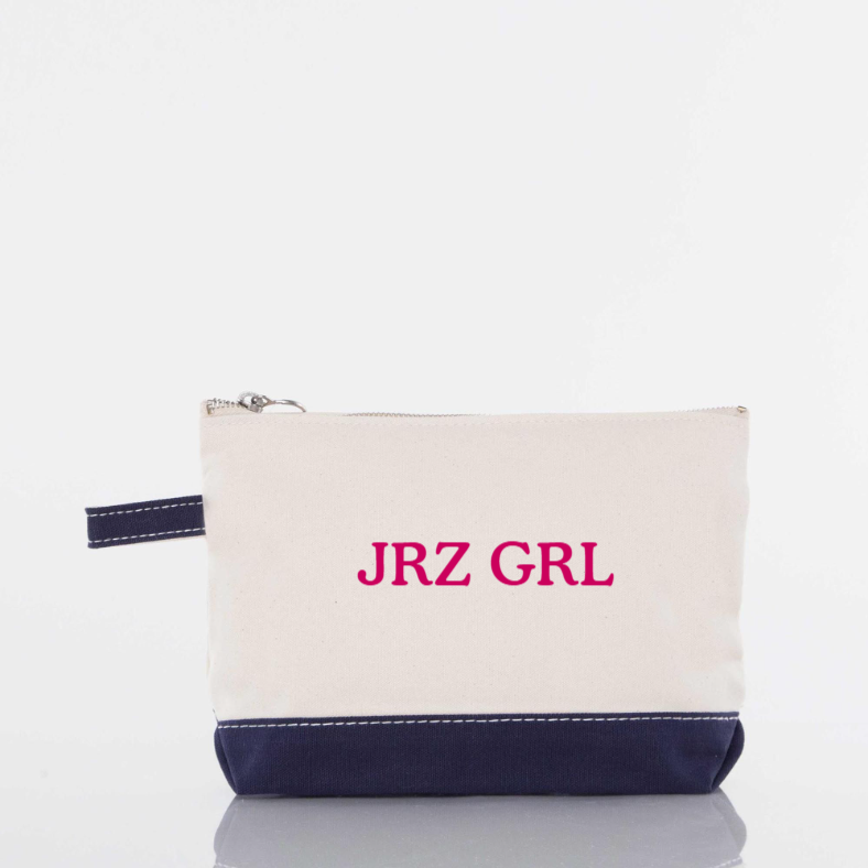 Easily our favorite and most versatile small accessory, the Makeup Bag comes second to none with It's classic two-tone canvas body paired with solid dyed scarlet red trim. Store your cosmetics, toiletries or other small accessories in personalized style by adding a monogram to this trendy pouch.