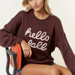HELLO FALL Letter Embroidered Round Neck Oversized Sweater Top
