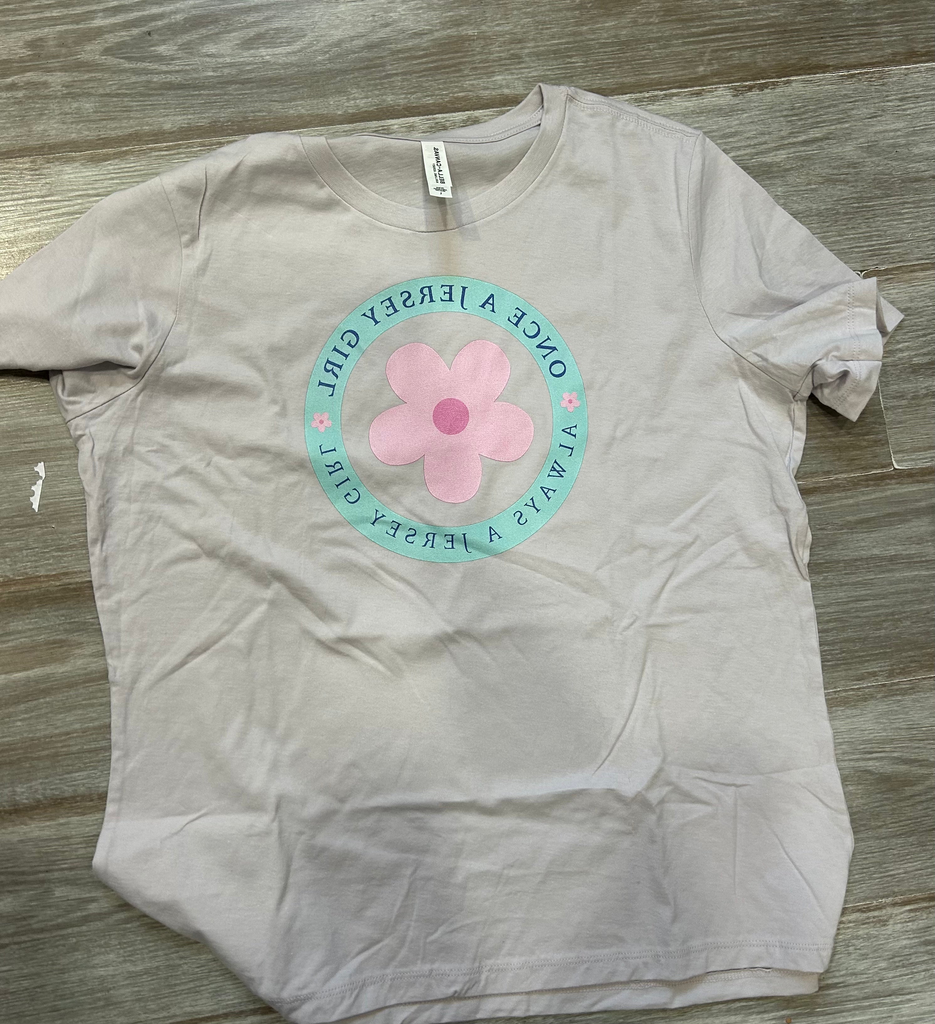 Soft and comfy tee featuring our Jersey Girl Daisy Badge Tee graphic — perfect for salty hair days, beach strolls, and local pride. Cotton/poly blend. Machine wash cold, tumble dry low.