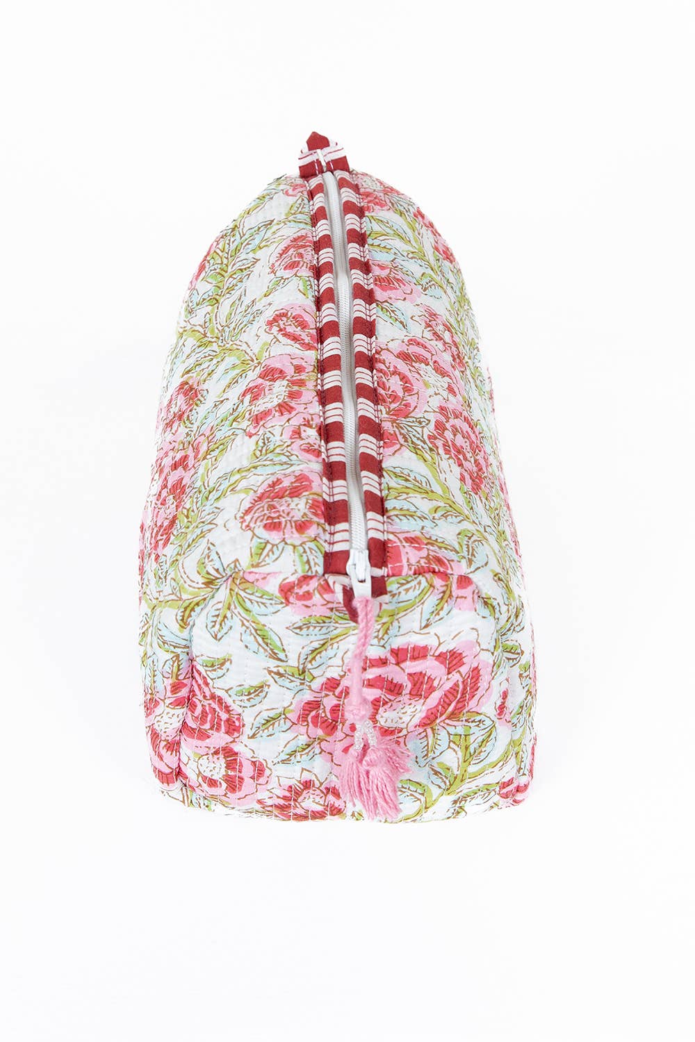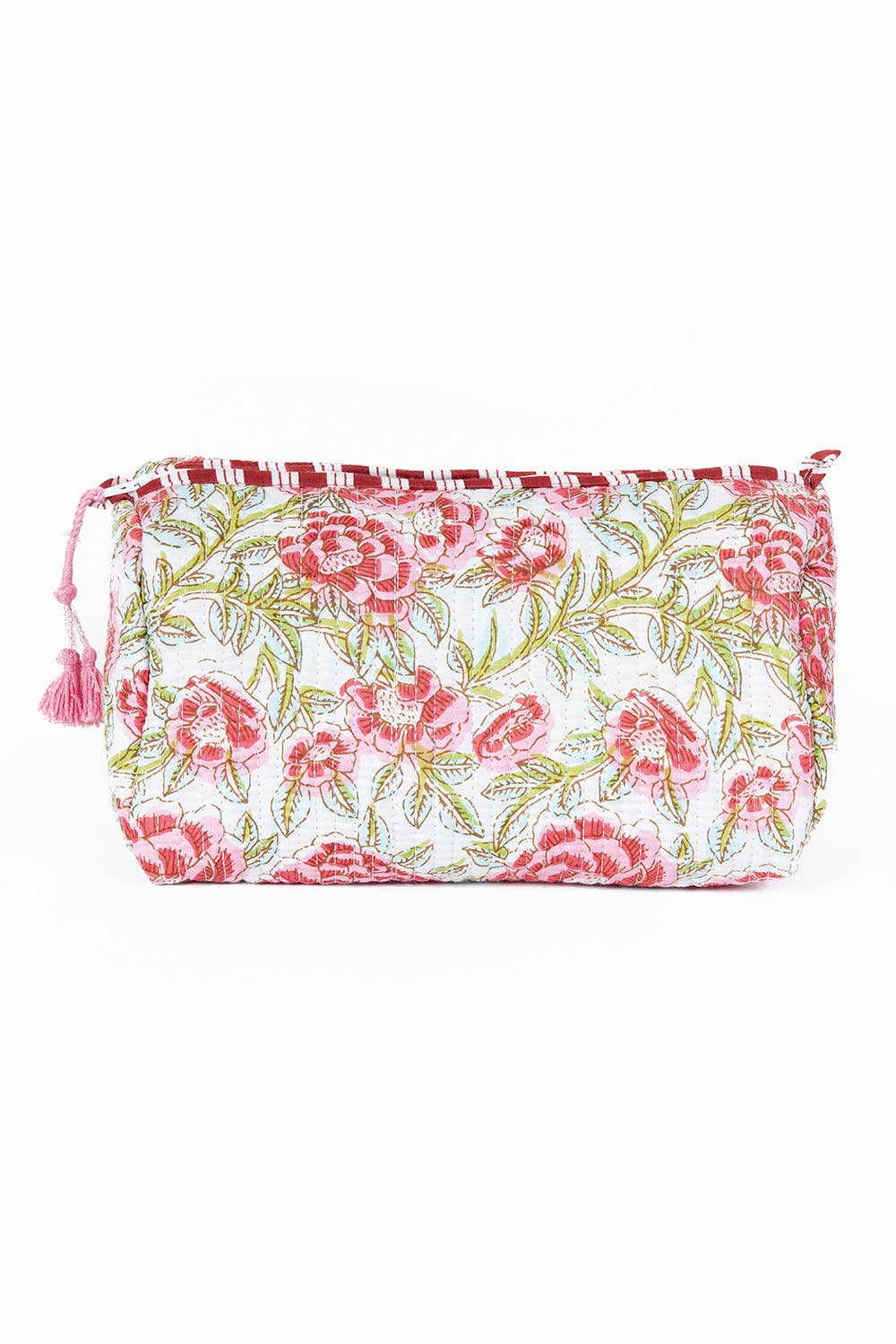 LA Soul - White with Red Floral print Quilted Cotton Toiletry Bag Set