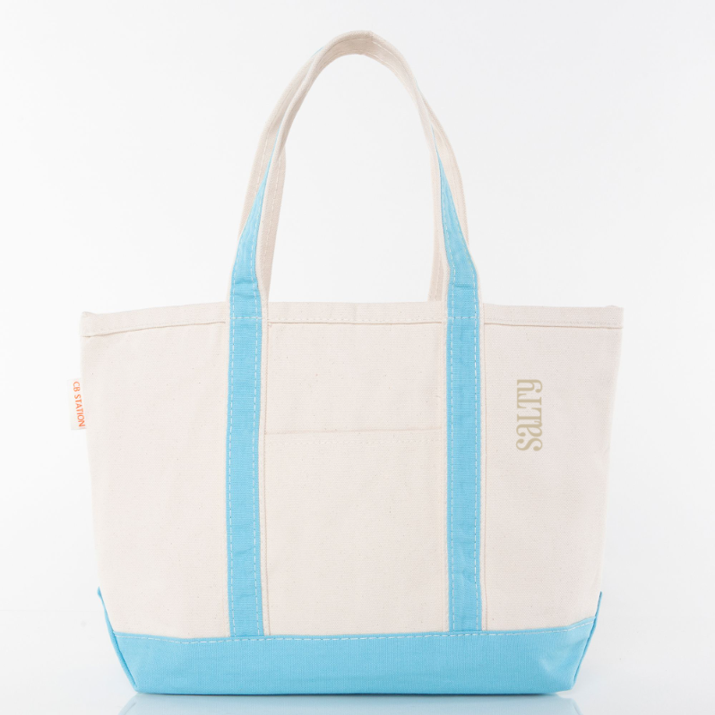 The Medium Classic Tote: versatile for beach, park, or boat trips. Stylish trim, top zip, outer pocket. A timeless gift or event takeaway.