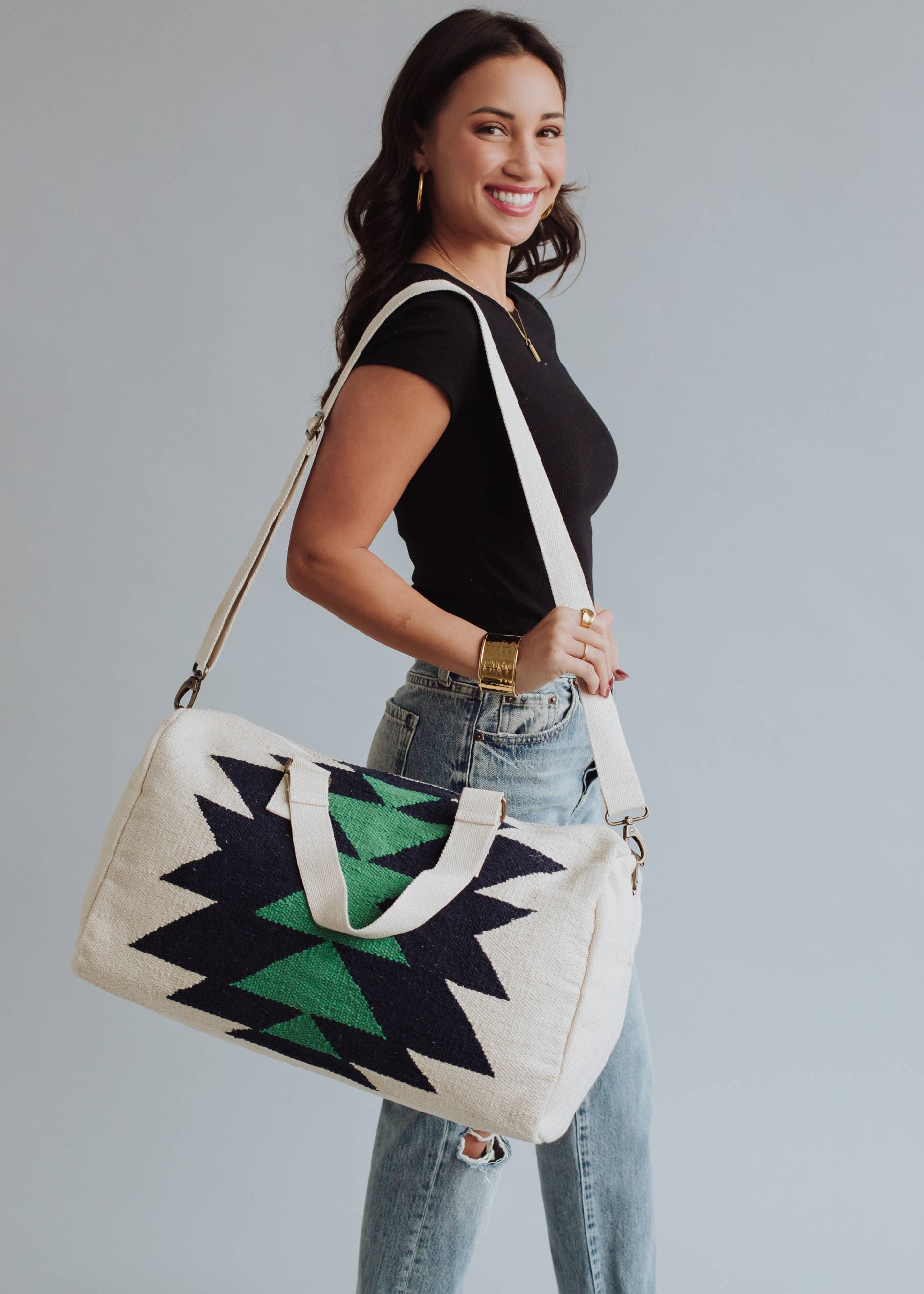 Panache Apparel Co. - Cream, Navy & Green Aztec Duffel