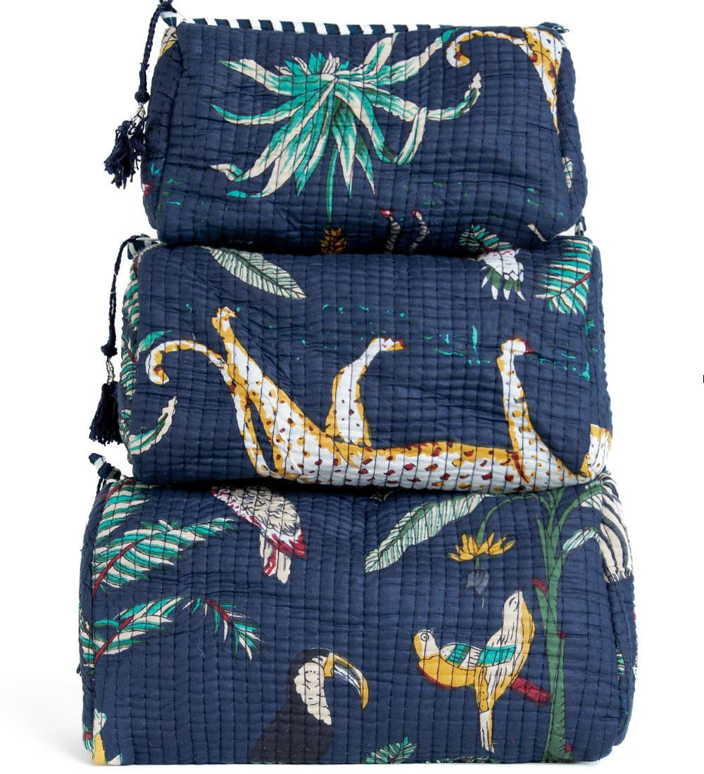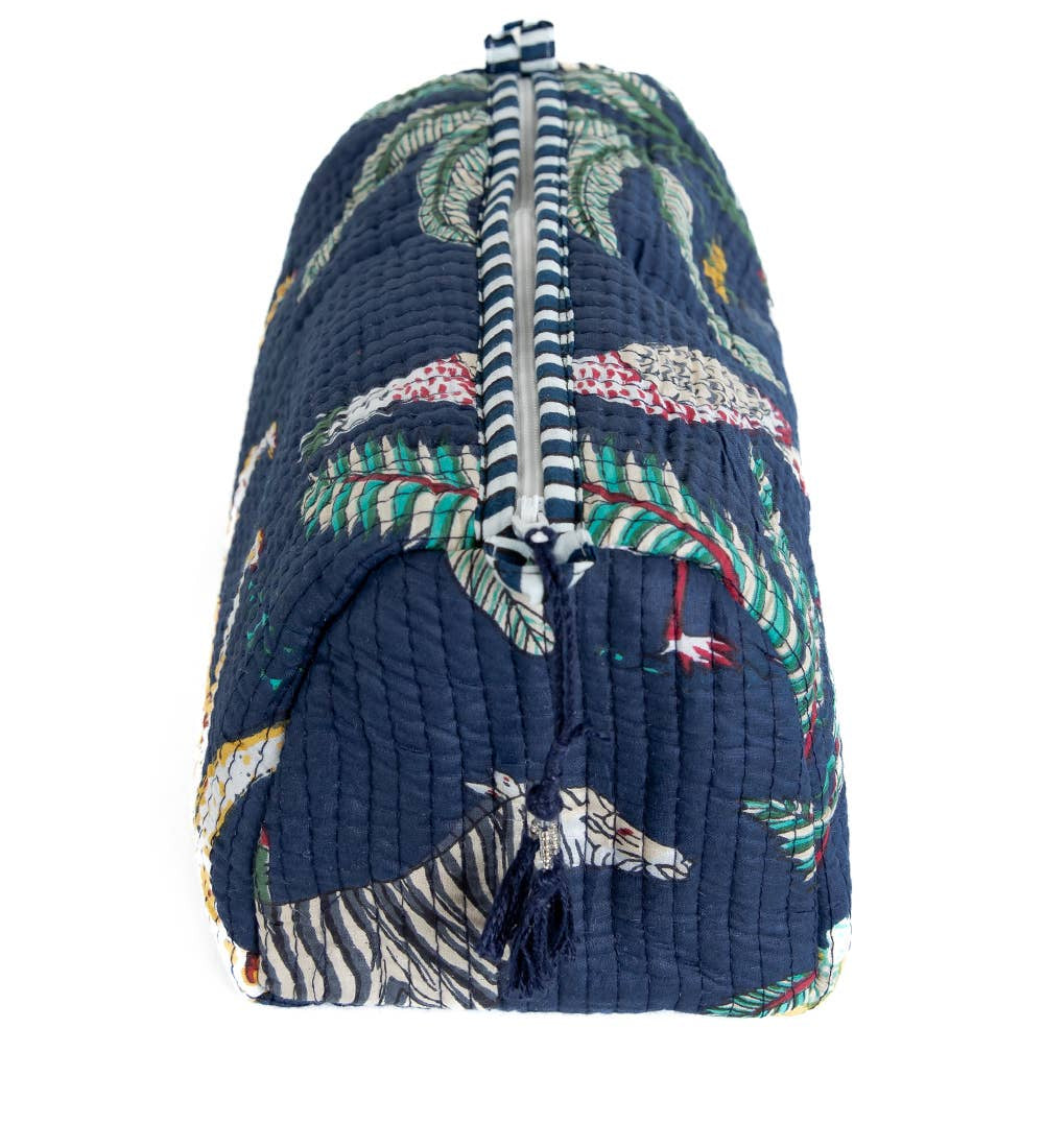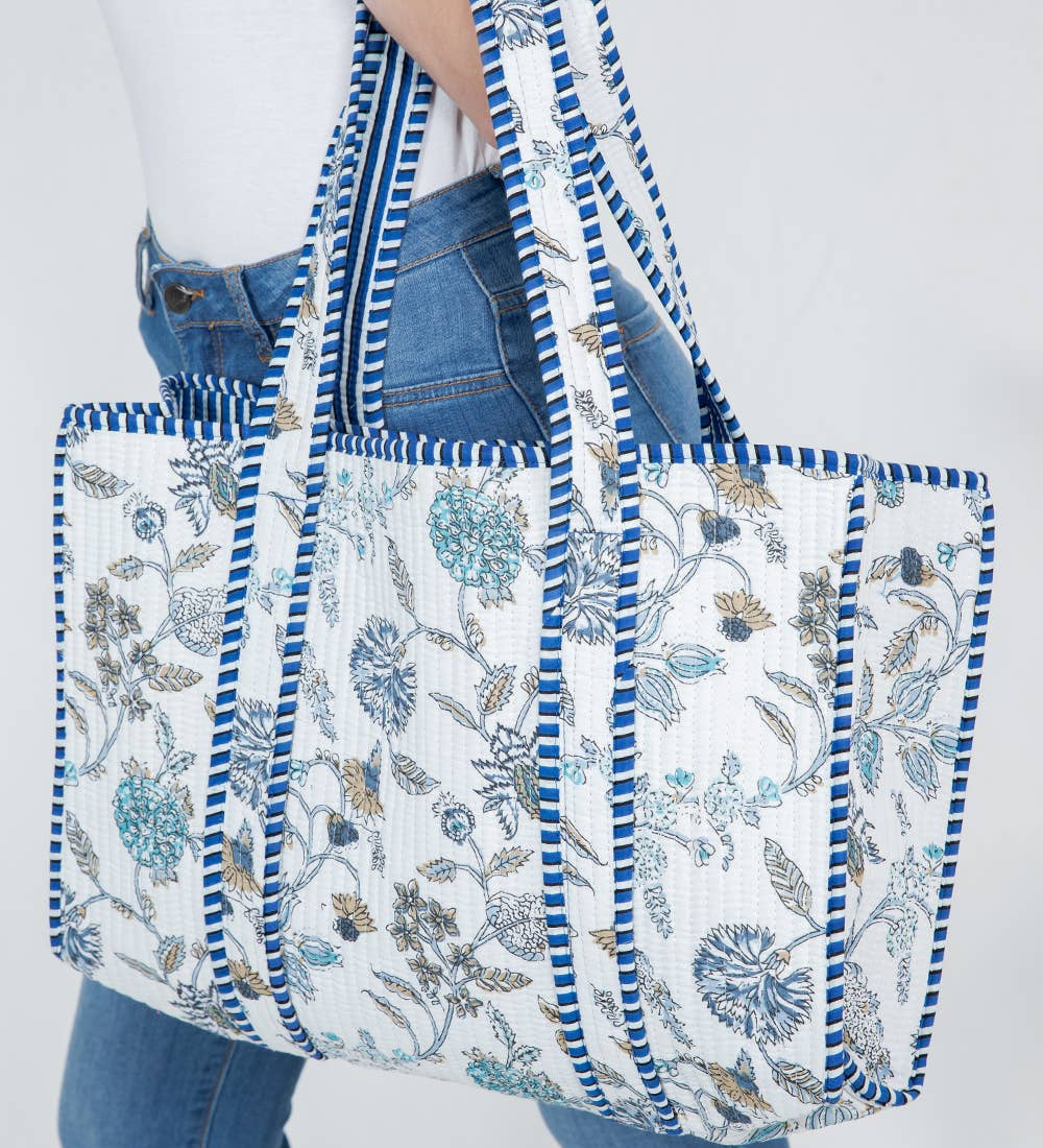 LA Soul - White Floral print Quilted Cotton Toiletry Bag Set