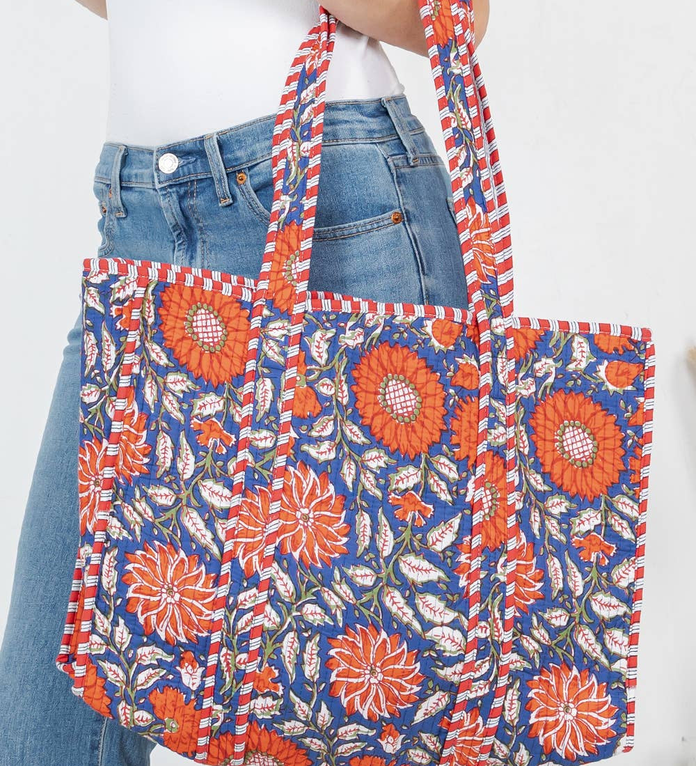 LA Soul - White with Red Floral print Quilted Cotton Toiletry Bag Set
