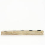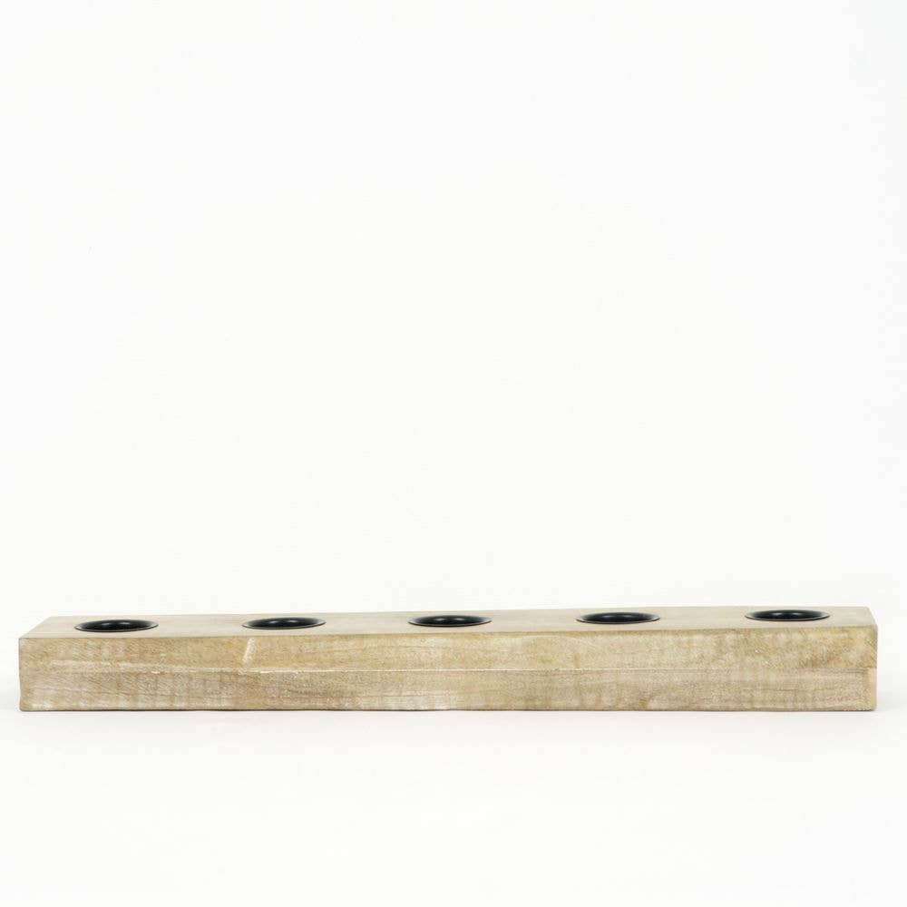 20x4x2 mango wd tea light hldr natural/bk. Our mango wood pieces are carved from the mango tree, a sustainable hardwood from India. The visible colors and grain variance make each piece not only beautiful, but completely unique.