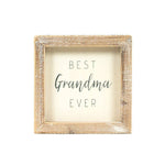 5x5x1.5 wood frame sign (GRANDMA) white/natural. Embrace the love of family with our charming 5x5x1.5 Wood Frame Sign, boldly declaring "Best Grandma ever".