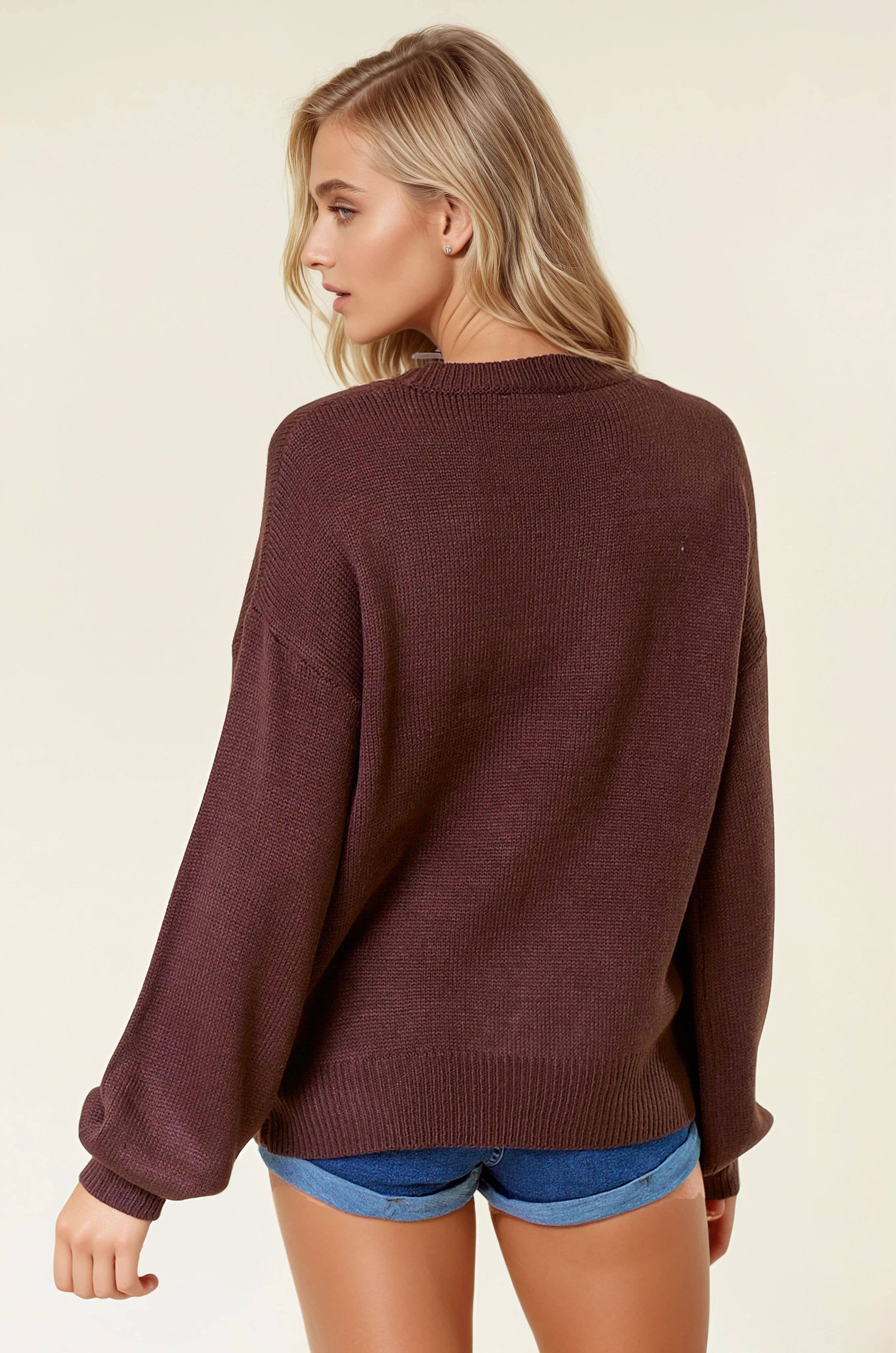 Doe and Rae - HELLO FALL Letter Embroidered Oversize Sweater - 43995T-2