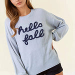 HELLO FALL Letter Embroidered Round Neck Oversized Sweater Top