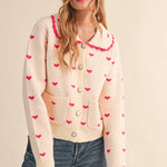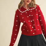 &MERCI - DOLL COLLAR HEART KNIT SWEATER CARDIGAN MSW11160