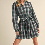 &MERCI - PLAID MINI DRESS WITH TIERED RUFFLE TRIM MDR3538