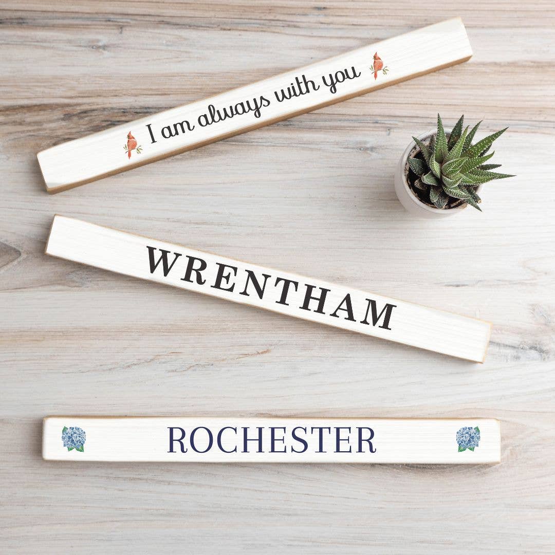 Our Skinny Sign will add character to any shelf or tabletop. Put a little bit of your personality on display on your mantel, bookcase or desk.