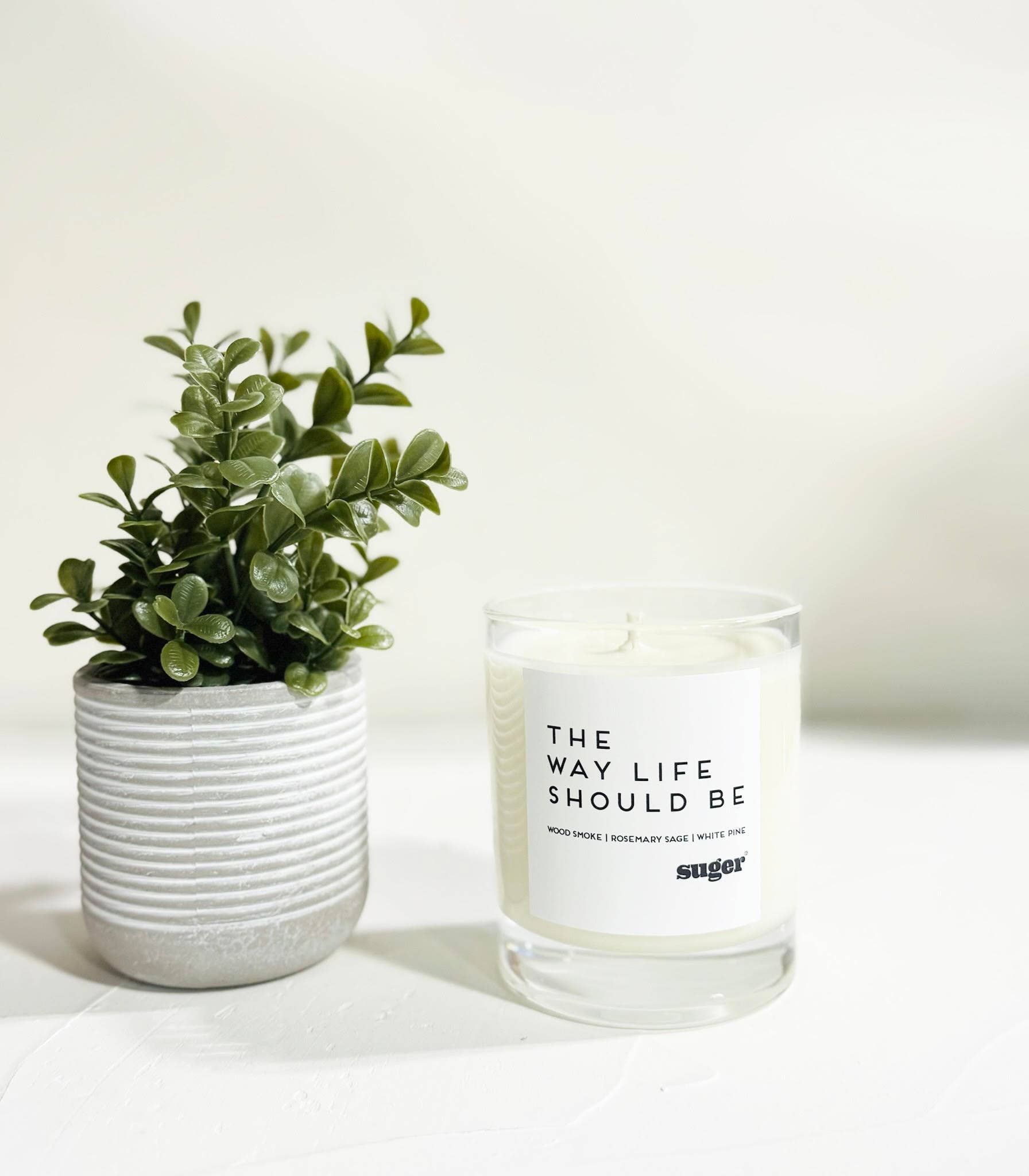 Single Cotton Braided Wick / 12 oz clear vessel / 40+hour burn time / 3" dia / 3.4" height