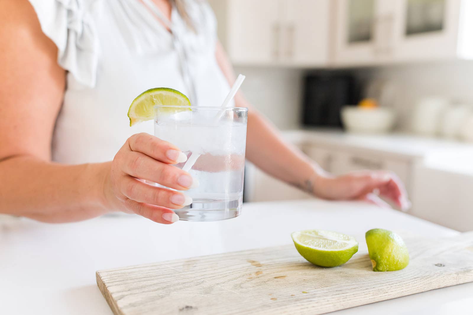 Poured into a 12 oz. clear cocktail glass adorned with eco-friendly seeded dust cover