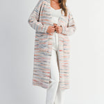 Space Dye Multi Color Stripe Open Midi Cardigan