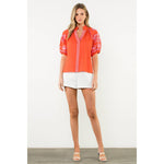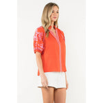 THML - Embroidered Puff Sleeve V-Neck Top