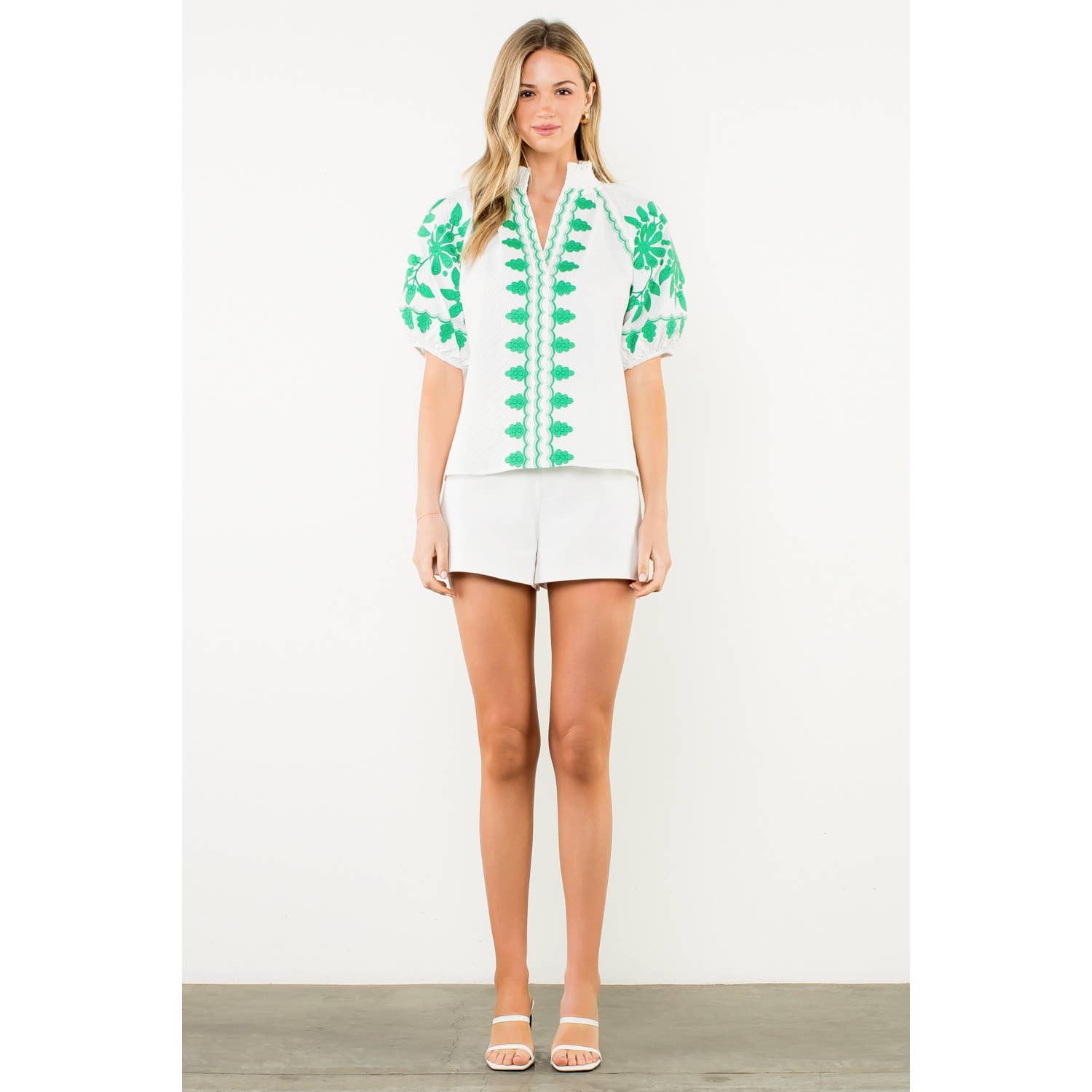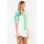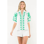 Embroidered Puff Sleeve Textured Top