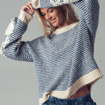 Urban Daizy - Floral Embroidered Striped Knit Sweater