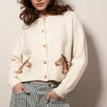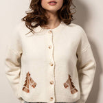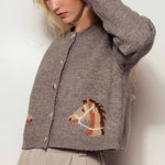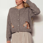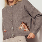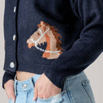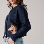 Urban Daizy - Western Horse Graphic Ribbed Trim Crew Neck Cardigan