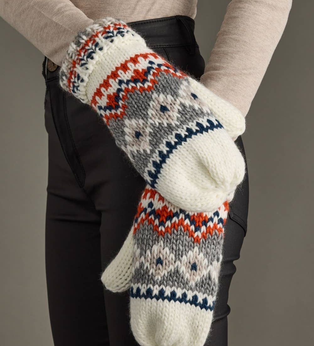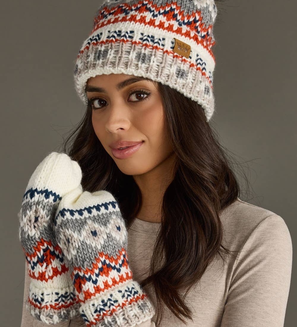 Panache Apparel Co. - White, Navy & Orange Patterned Mittens
