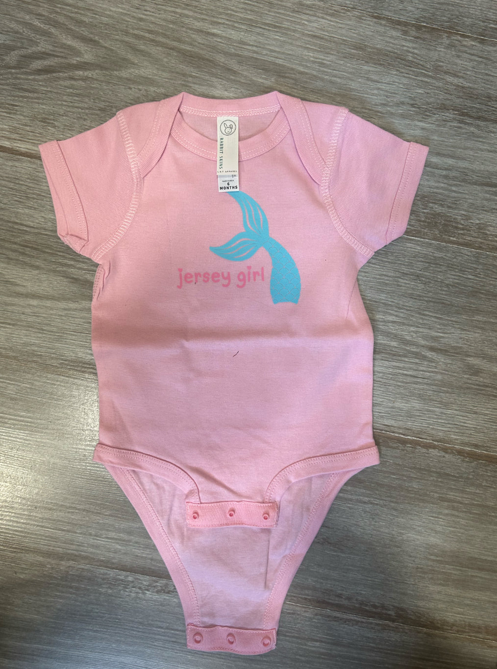 Soft cotton onesie with our Jersey Girl Mermaid Onesie print — easy snap closure and plenty of Jersey Shore love for the tiniest locals. 100% cotton. Machine wash cold, tumble dry low.