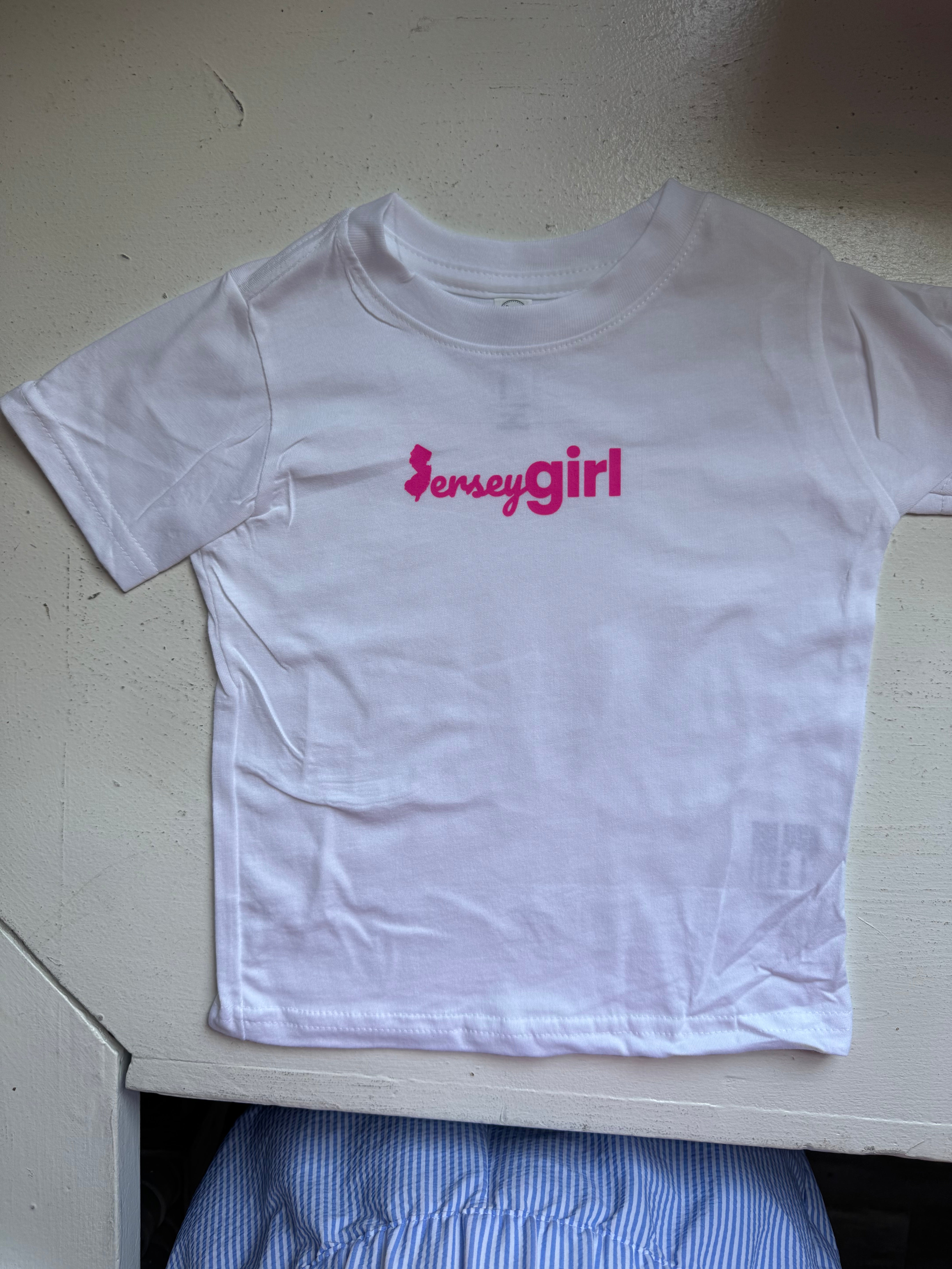 Celebrate your New Jersey pride with this expertly designed Jersey Girl tee, featuring the state of New Jersey cleverly integrated as the letter "J." Crafted for comfort and style, this shirt offers a unique way to showcase your roots while enjoying a flattering fit and quality fabric. Perfect for everyday wear or as a thoughtful gift for anyone who calls the Garden State home.