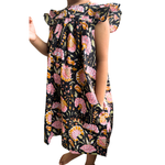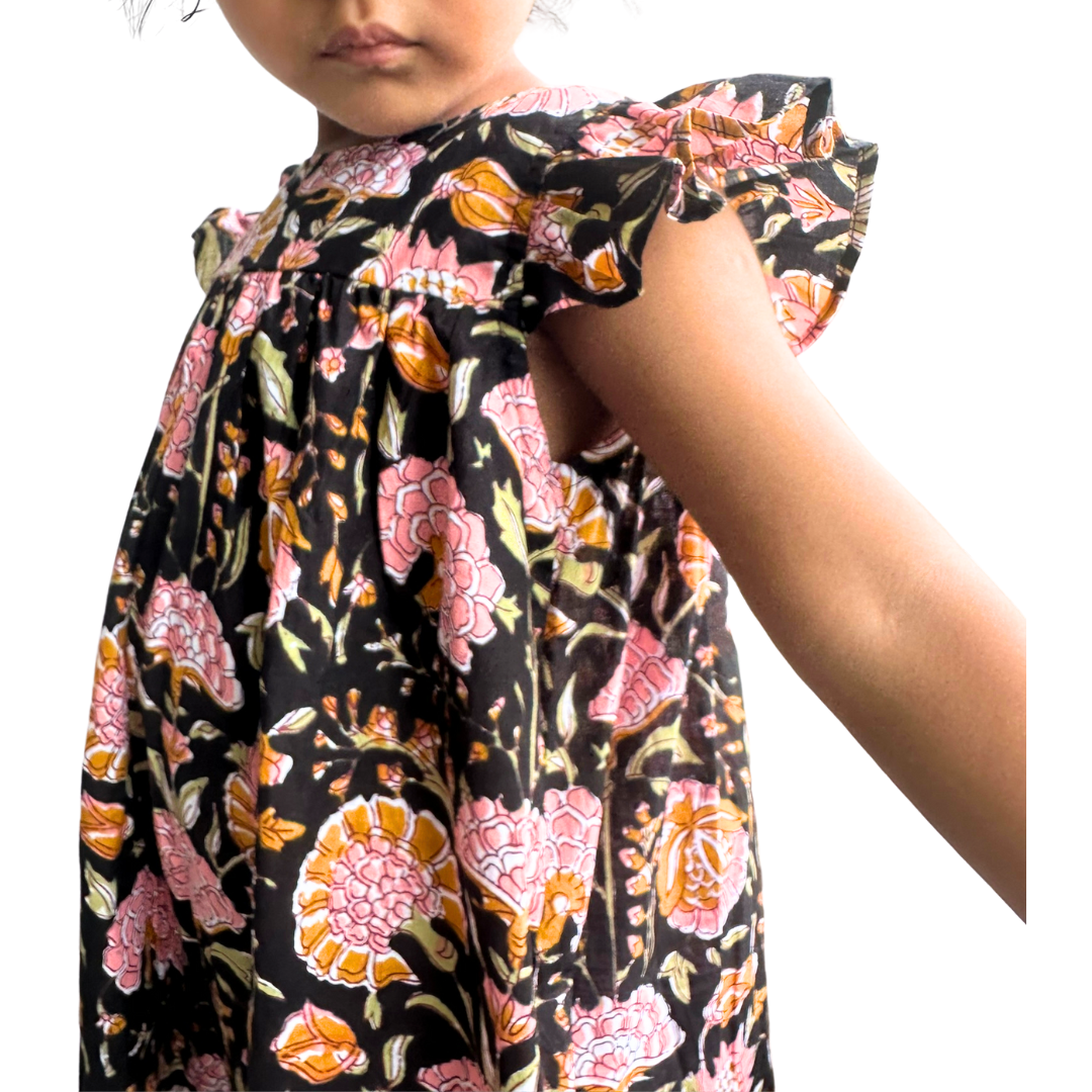 The Indian Bazaar - Girls Flutter Sleeve Midi Dress- Charcoal and Pink Magnolia