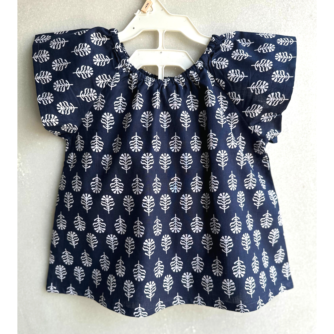 The Indian Bazaar - Girls Peasant Top - Blue and White Buti, Raglan Flare Sleeve