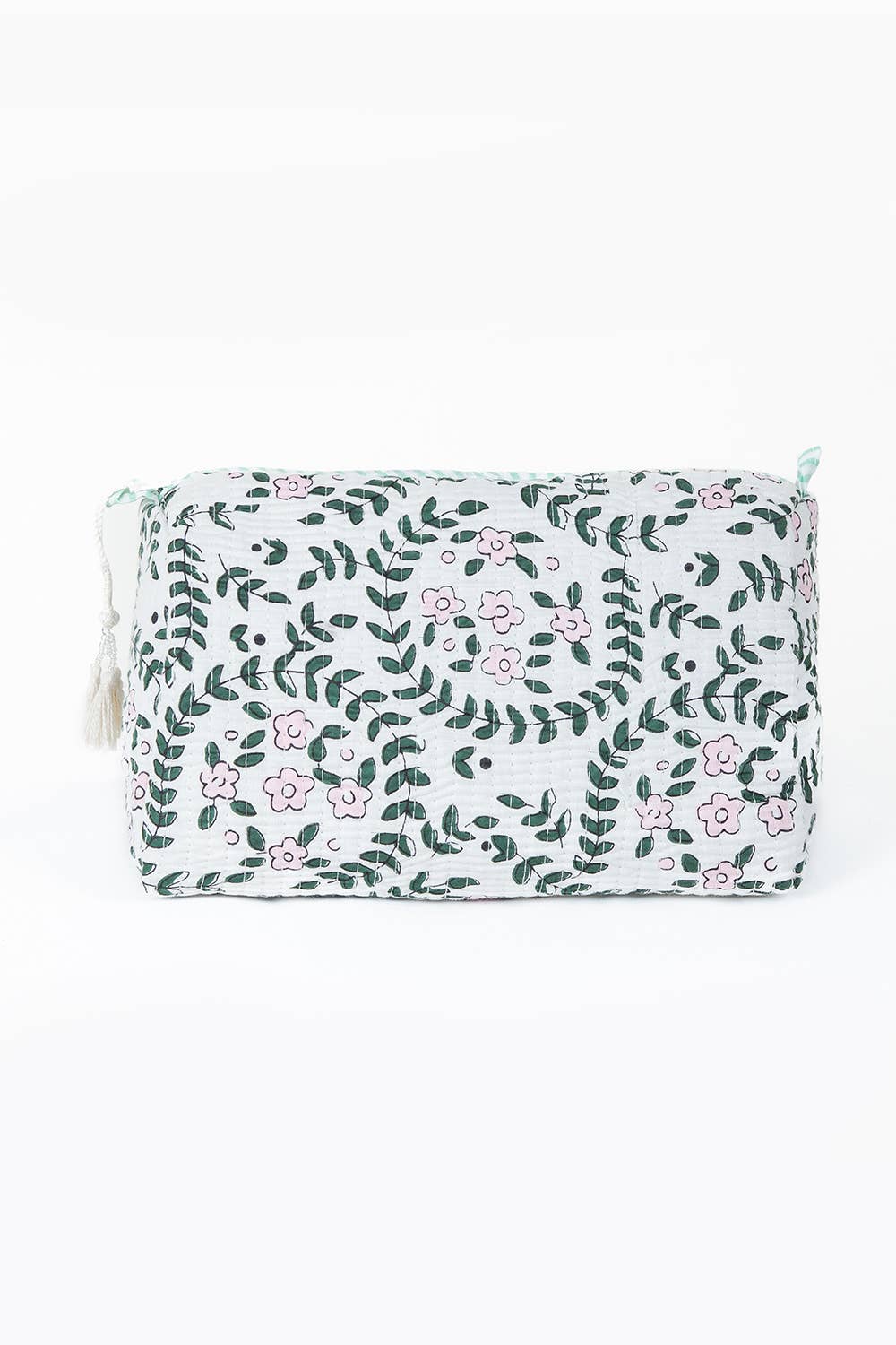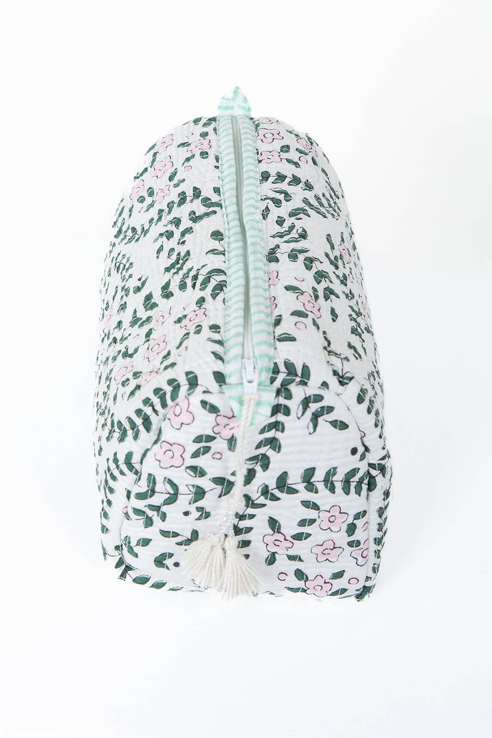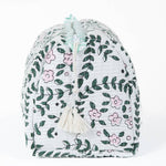 LA Soul - White Floral print Quilted Cotton Toiletry Bag Set