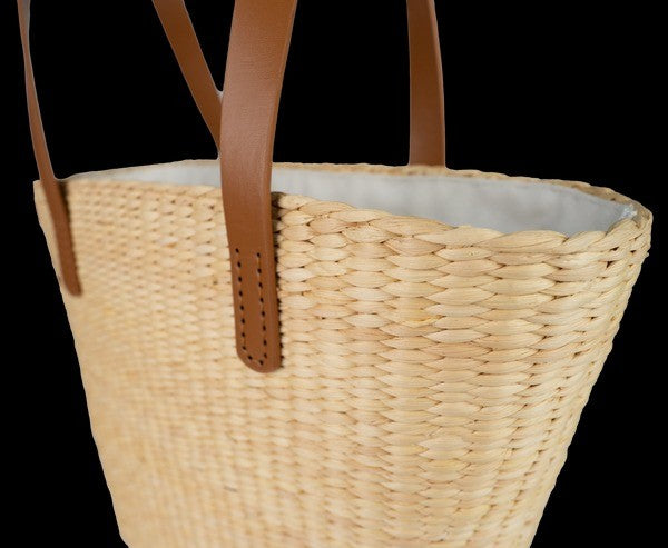 Inspired by the graceful and resilient willow tree, the WILLOW tote from our Secret Garden Collection is your beautiful and dependable everyday companion. This spacious and practical tote features a tapered design that's wider at the top for easy access and stable at the bottom. Crafted from sustainable, natural water hyacinth, it's a perfect blend of minimalist style and bohemian spirit. The durable faux leather handles are customizable, available in Classic Brown, Deep Blue, Coral Red, or Forest Green. It's roomy enough for a book, a water bottle, and all your daily essentials, making it ideal for market trips, beach days, or even a casual day at work. Each WILLOW tote is thoughtfully handmade, celebrating the small, authentic variations that make your bag truly one-of-a-kind.