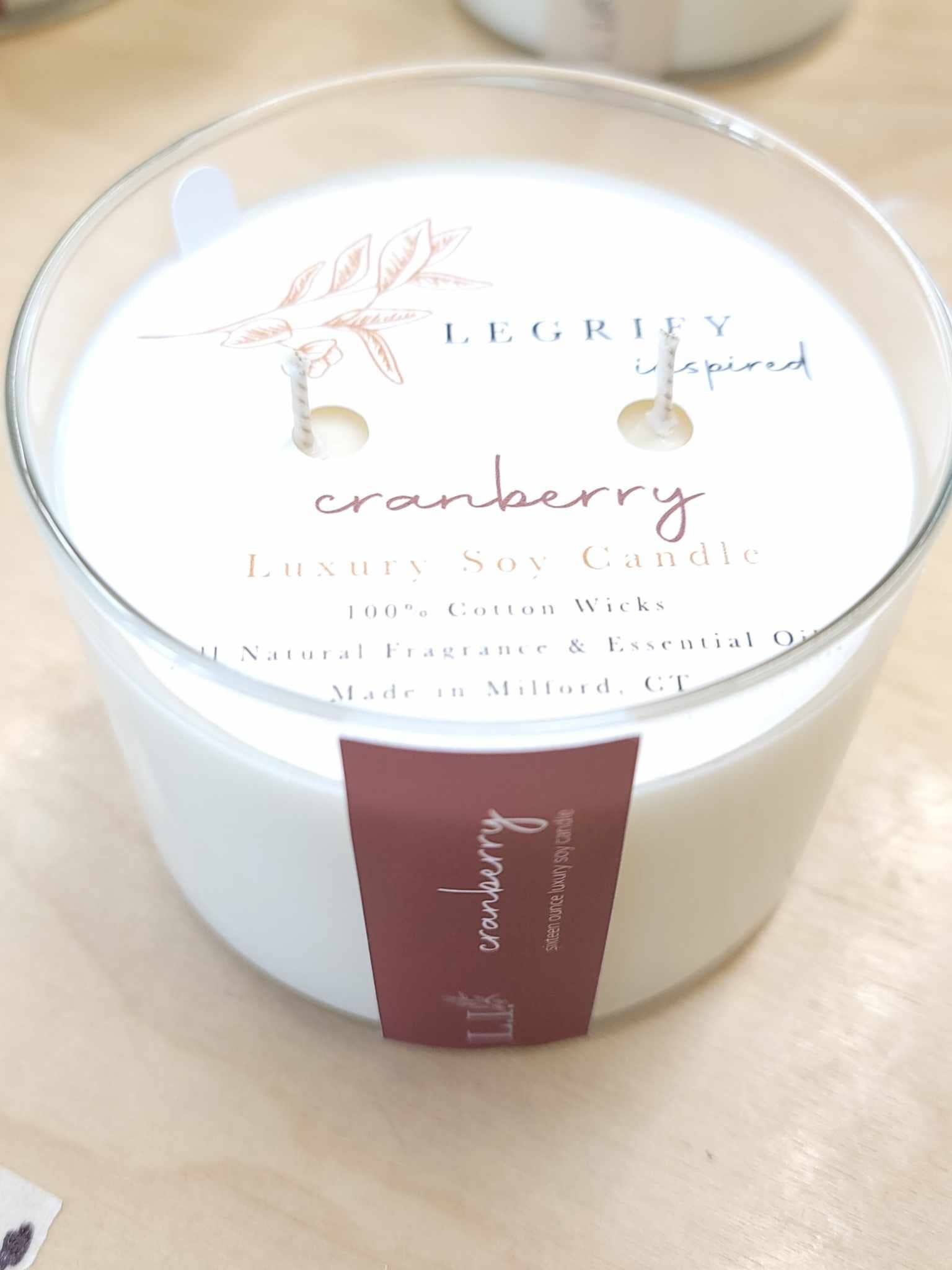 Legrify Inspired Luxury Candles & Home Fragrance - Cranberry Classic Glass 2 Wick Soy Candle