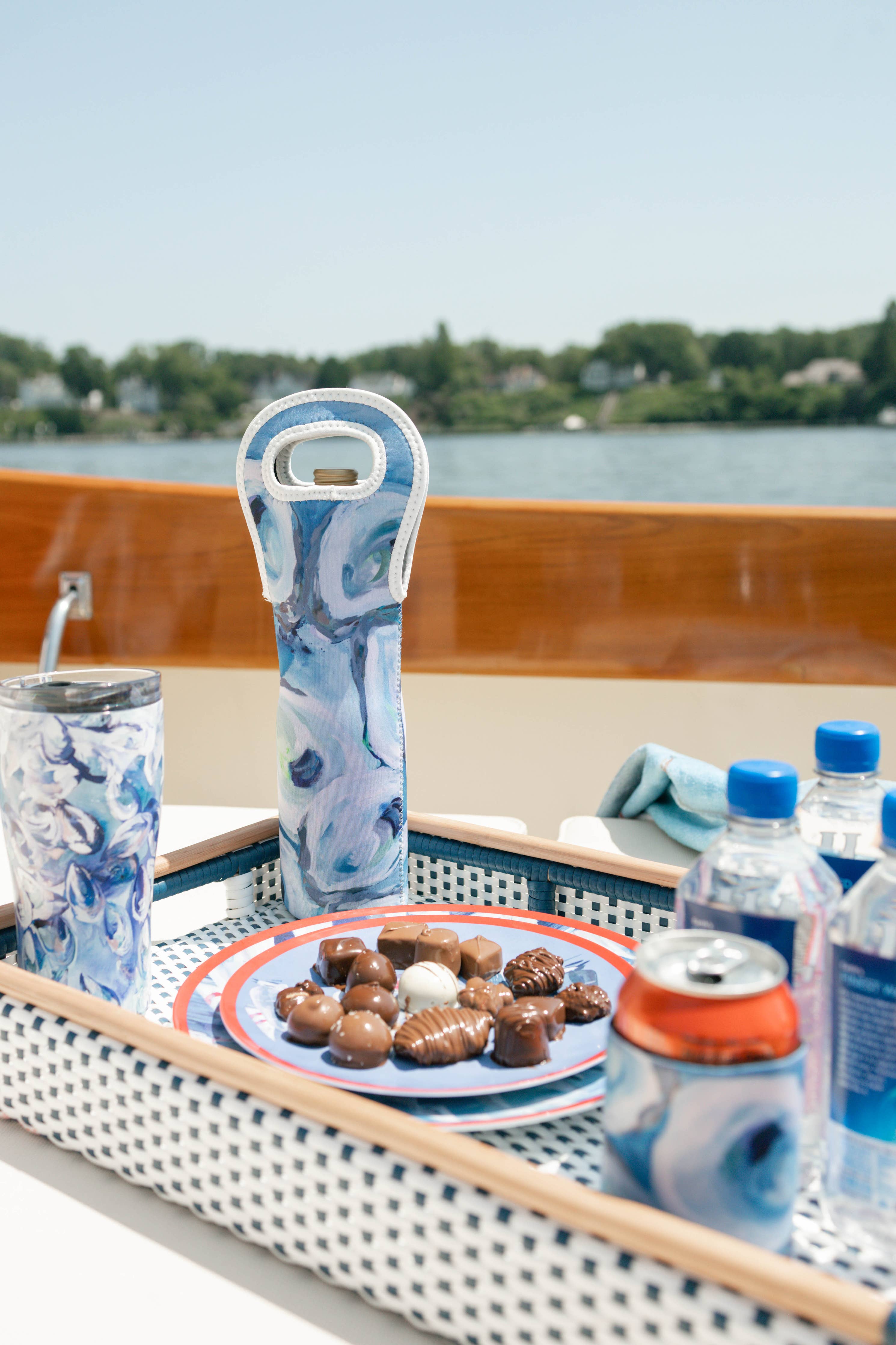 Carry your favorite bottle of wine in style with a wine tote featuring original artwork by Kim Hovell that keeps your bottle cool and safe. Great as a standalone gift and even better when paired with a nice bottle of wine!