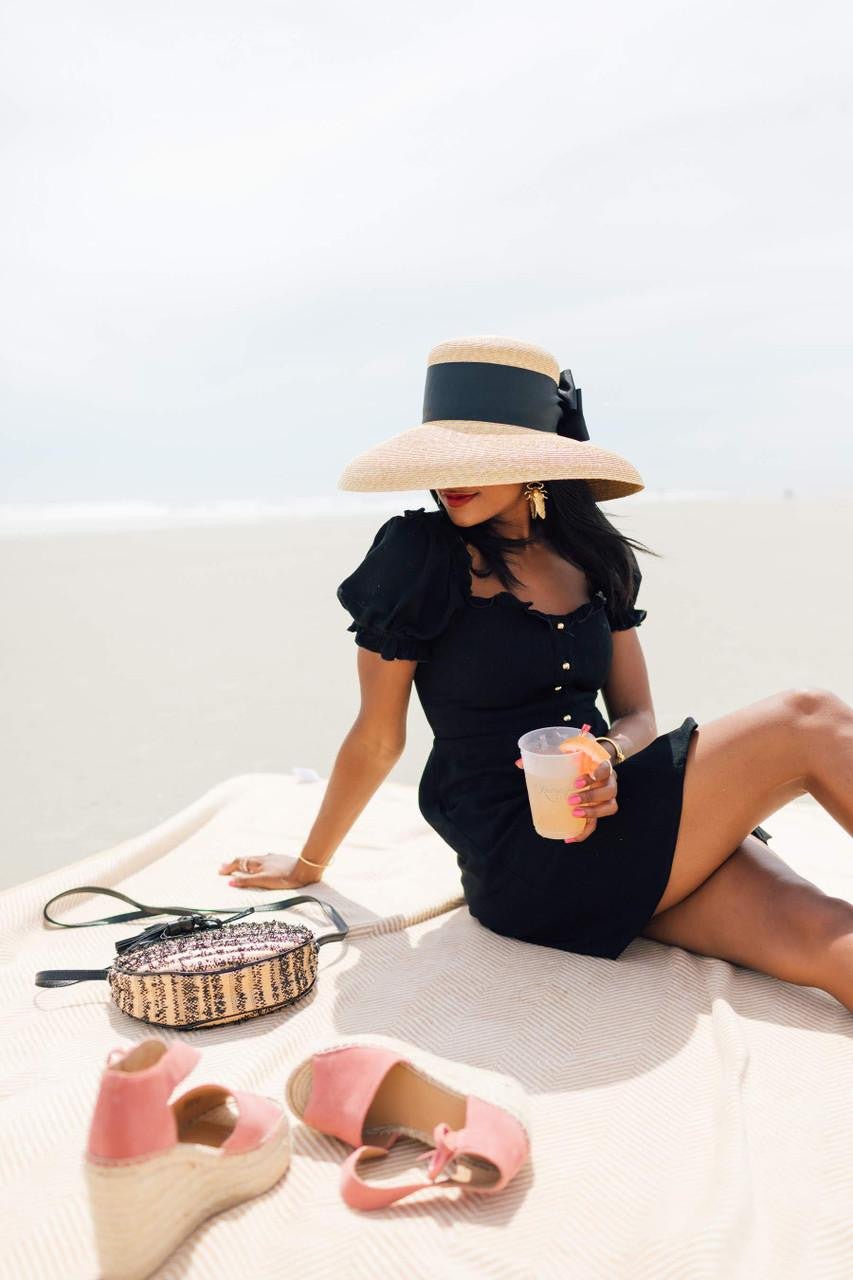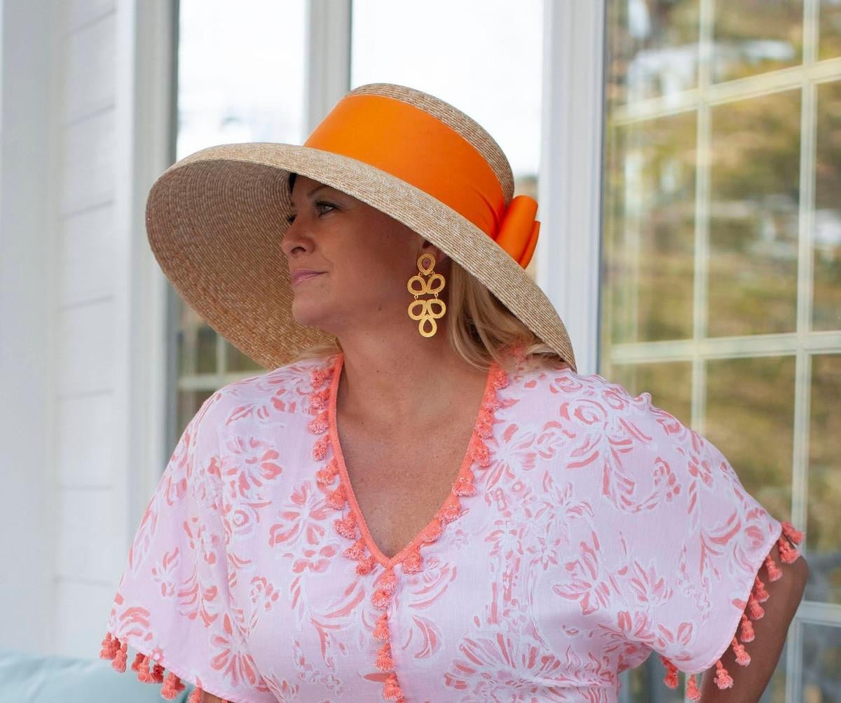 Your custom sun hat perfectly with Lisi Lerch’s statement earrings and a handwoven Bali Bag.