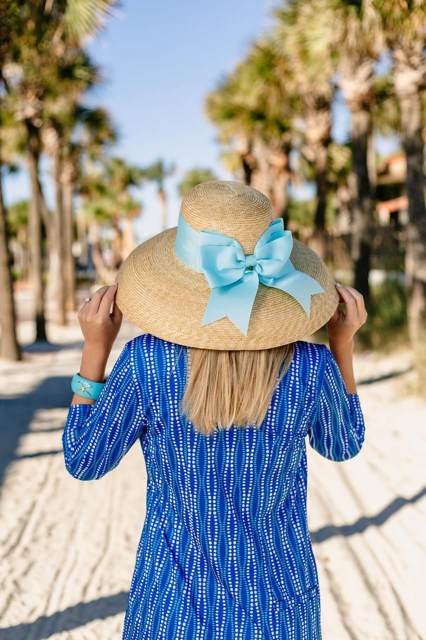 Inspired by sunny strolls in Nantucket and resort-level relaxation, the Lauren Hat is a custom sun hat with large downturned brim and custom ribbon bow that’s perfect for your summer getaways. Handmade and woven with golden wheat straw, add a flat or fluffy blow in a color of your choice! Elevate your outfit while relaxing on the beach or having brunch and shopping in the sun.