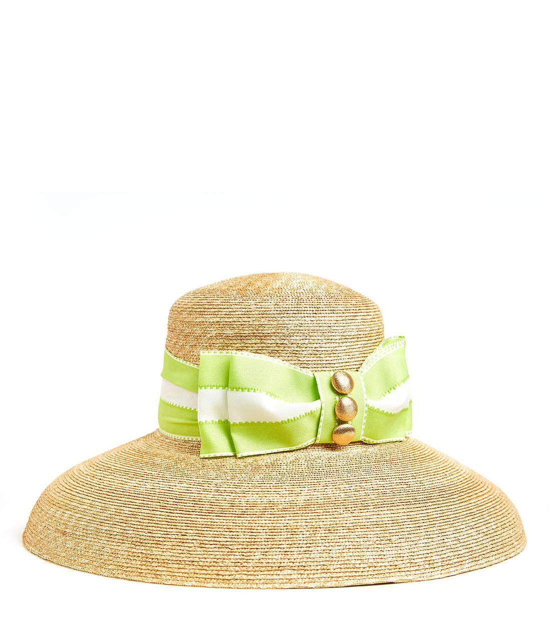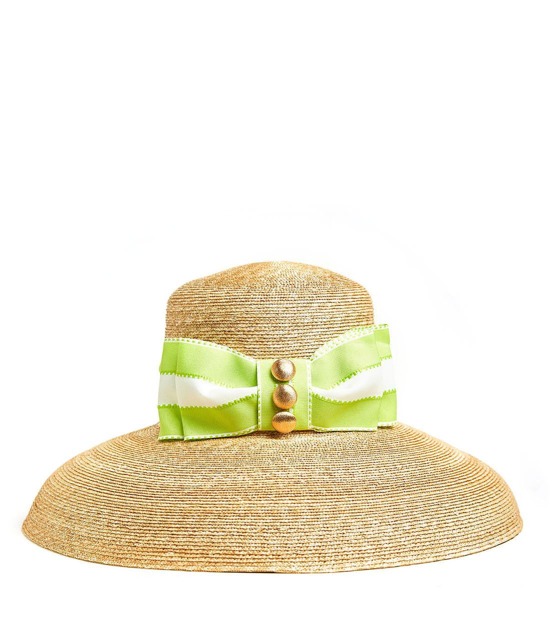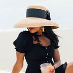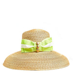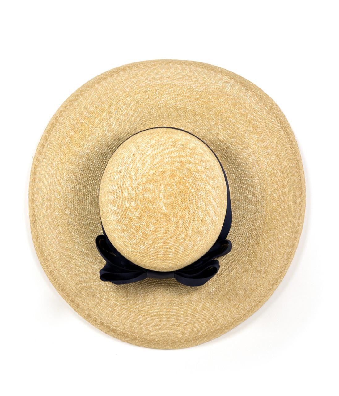 Flaunt your unique style and celebrate your self-expression with the Lauren straw hat with flat bow and stylish adornment. Inspired by summer weekends in Nantucket, this custom sun hat features a tall crown, wide downturned brim, and unmatched sophistication for an elevated yet simple look.