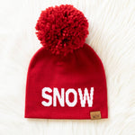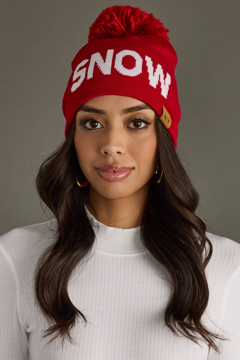 Red snow pom hat Large red pom accent 85% Acrylic / 15% Spandex Min. Qty. 2