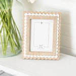 8x10x1 wood photo frame (SCALLOP) holds 5x7 photo, natural/white Lots of raised wooden dimension with this one -- BEST seller! Back in Stock!