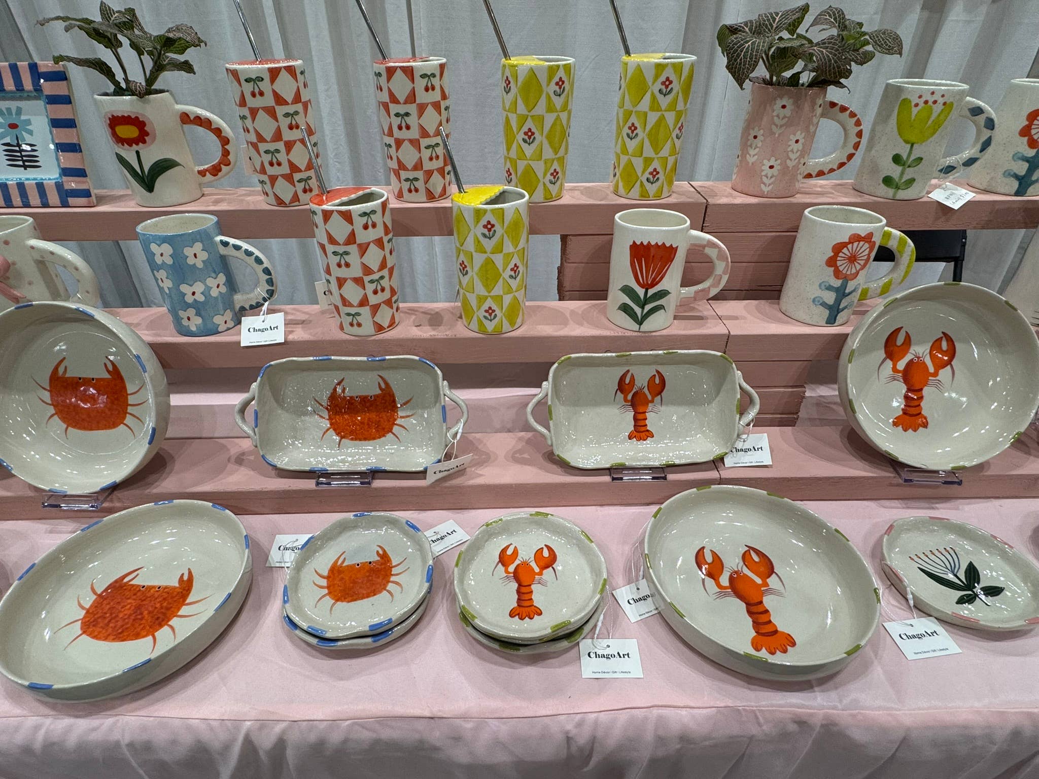 Hand-painted with a red lobster design on 100% stoneware and fired at 2282 °F, each baking dish is finished with bold green brushstrokes along the rim. Perfect for holiday baking. Every piece is unique due to its handmade nature. - 10" x 5" x 1.8", 12 oz - Dishwasher and microwave safe - Contains 20% of recycled ceramic ChagoArt was founded in Los Angeles in 2024 by Chaoqun Chen. A portion of our profits is donated to the children's hospital. Retailers: coastal life seaside nautical waterfront gift shop, coffee flower floral home goods general stores, souvenir boutique, garden center, museum store, home kitchen store, bookstore, stationery, candle store, beach surf shop, lake life, swim, resort, shoreline People also consider: cute gifts, novelty gift, stocking stuffers, Christmas fall winter holiday gift, Christmas filler, gift for mom, women, birthday, rectangular baking dishes with handles, dish for oven