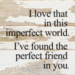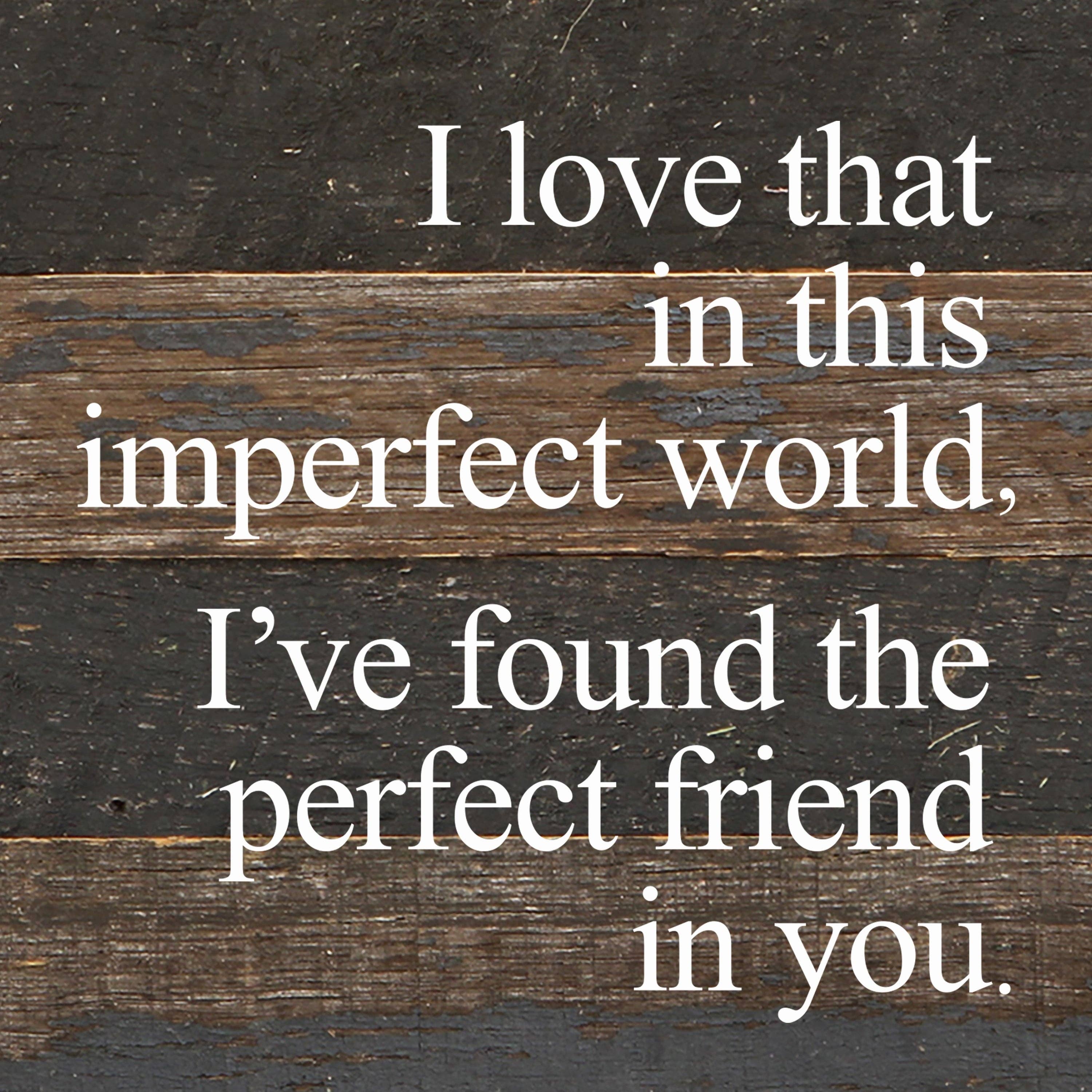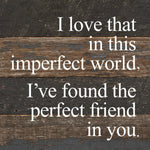 Second Nature by Hand - I love that in this imperfect world, I've found the perfect friend in you. / 6"x6" Reclaimed Wood Sign