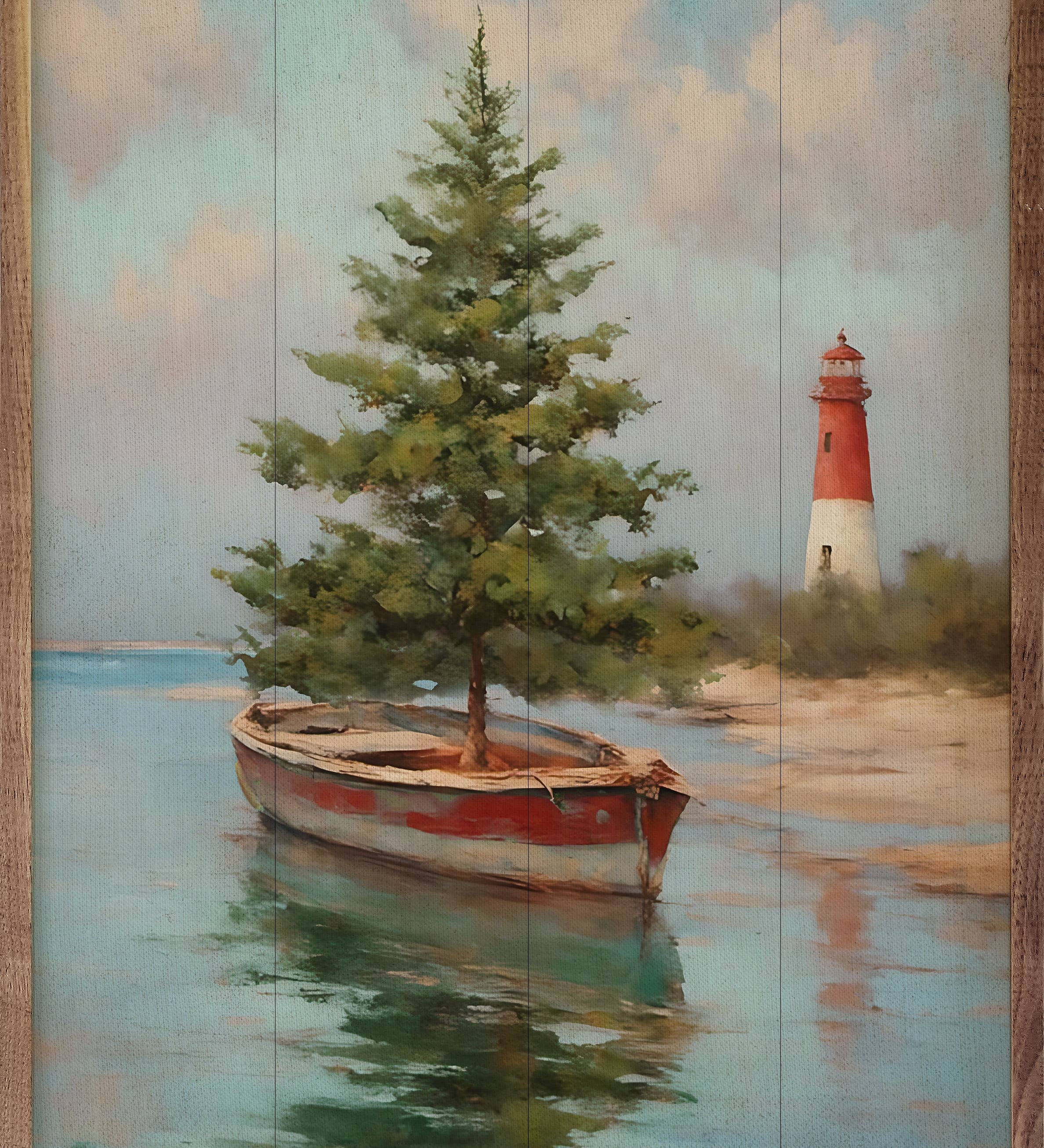Rustic Marlin - Watercolor Christmas Tree Decorative Wooden Block