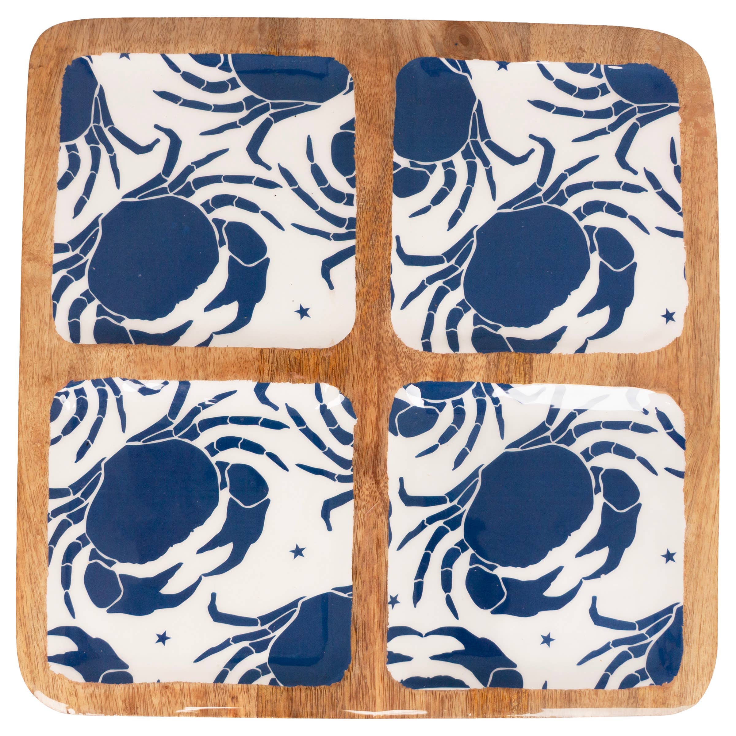 Boston International - 11.75" Dia. Navy Crabs Mango Wood 4 Sectioned Tray