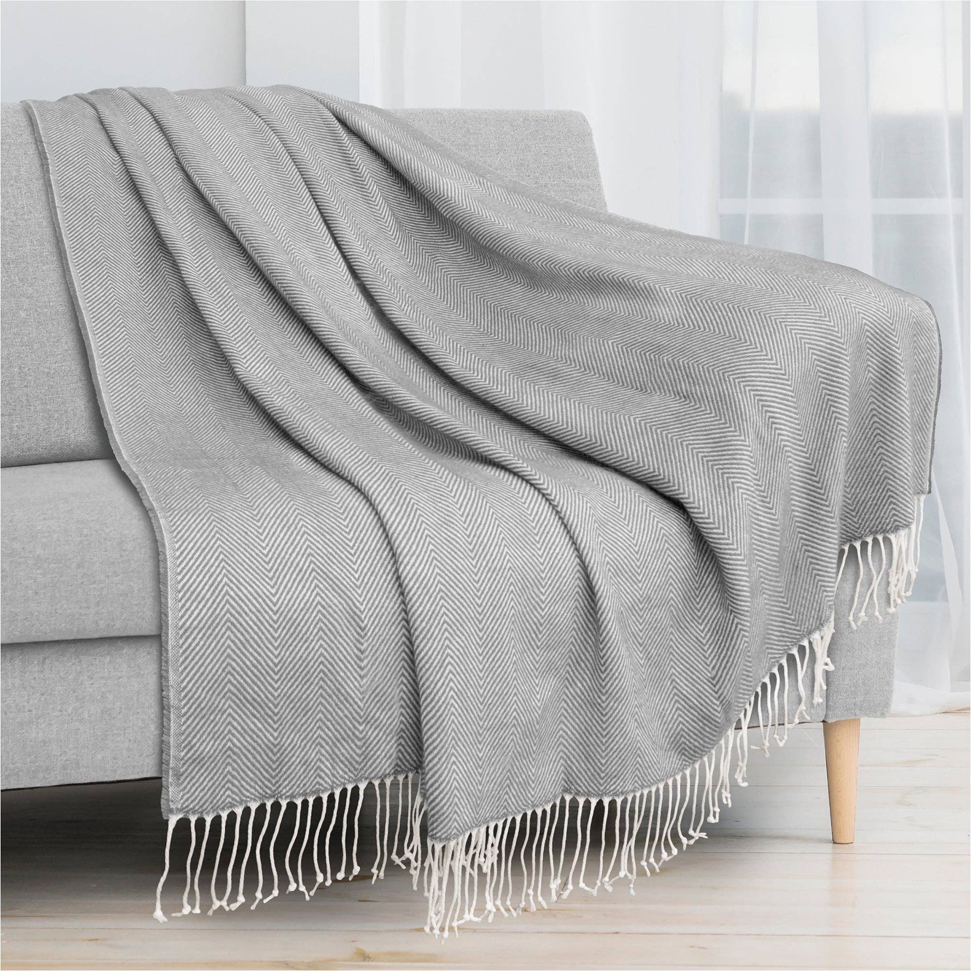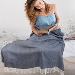 Herringbone Knit Fringe Throw Blanket