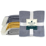 Pavilia Deluxe Textured Knit Fringe Throw Blanket is made of 100% premium acrylic that is silky smooth to touch, warm, lightweight, and cozy, making it a versatile choice for all season use. It is wrinkle and fade resistant and doesn't shed! Perfect for you to snuggle with while watching TV on the couch, or relaxing on your sofa and bed. Perfect for indoor use but also great for outdoor use; Plenty of room to wrap around most adults and kids.